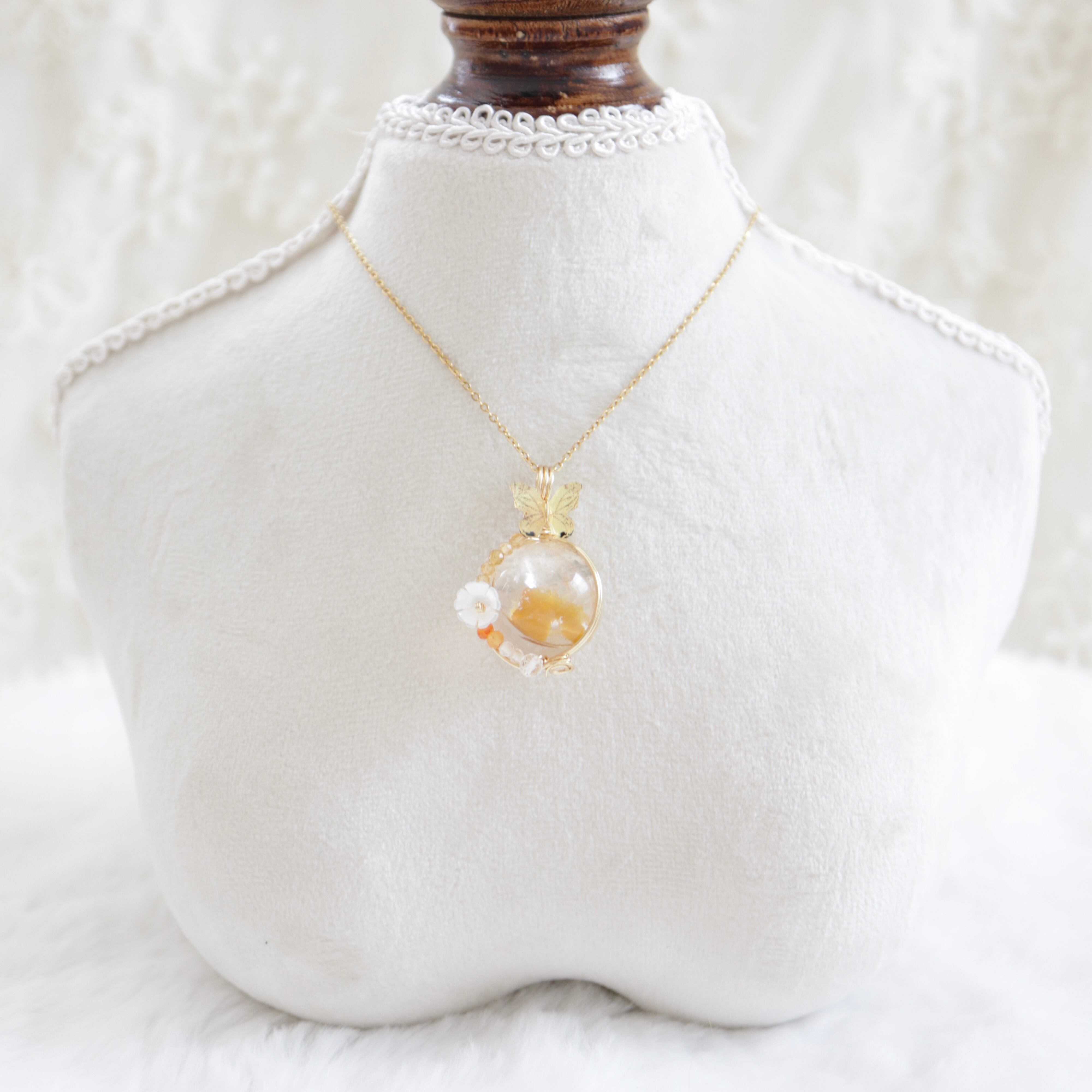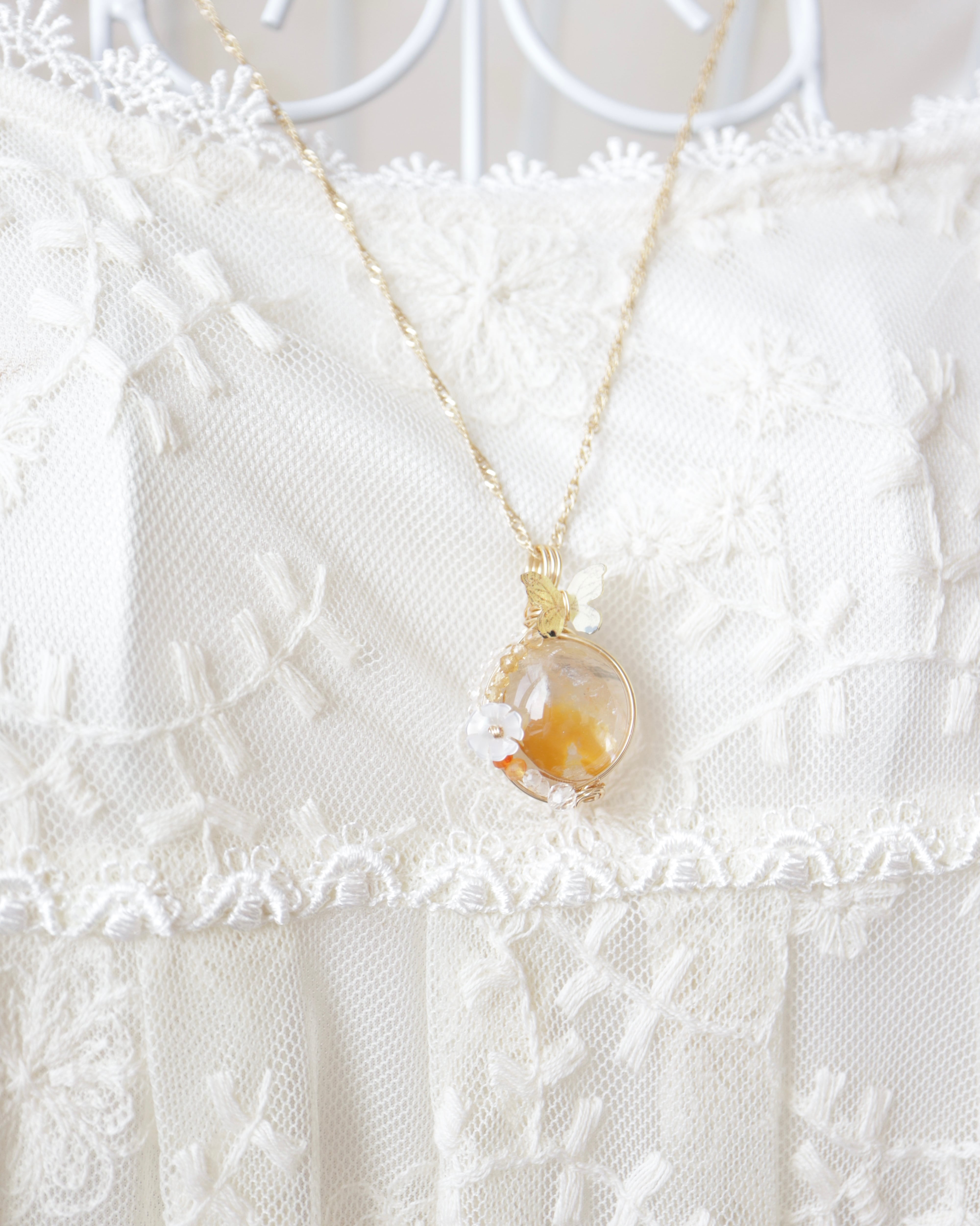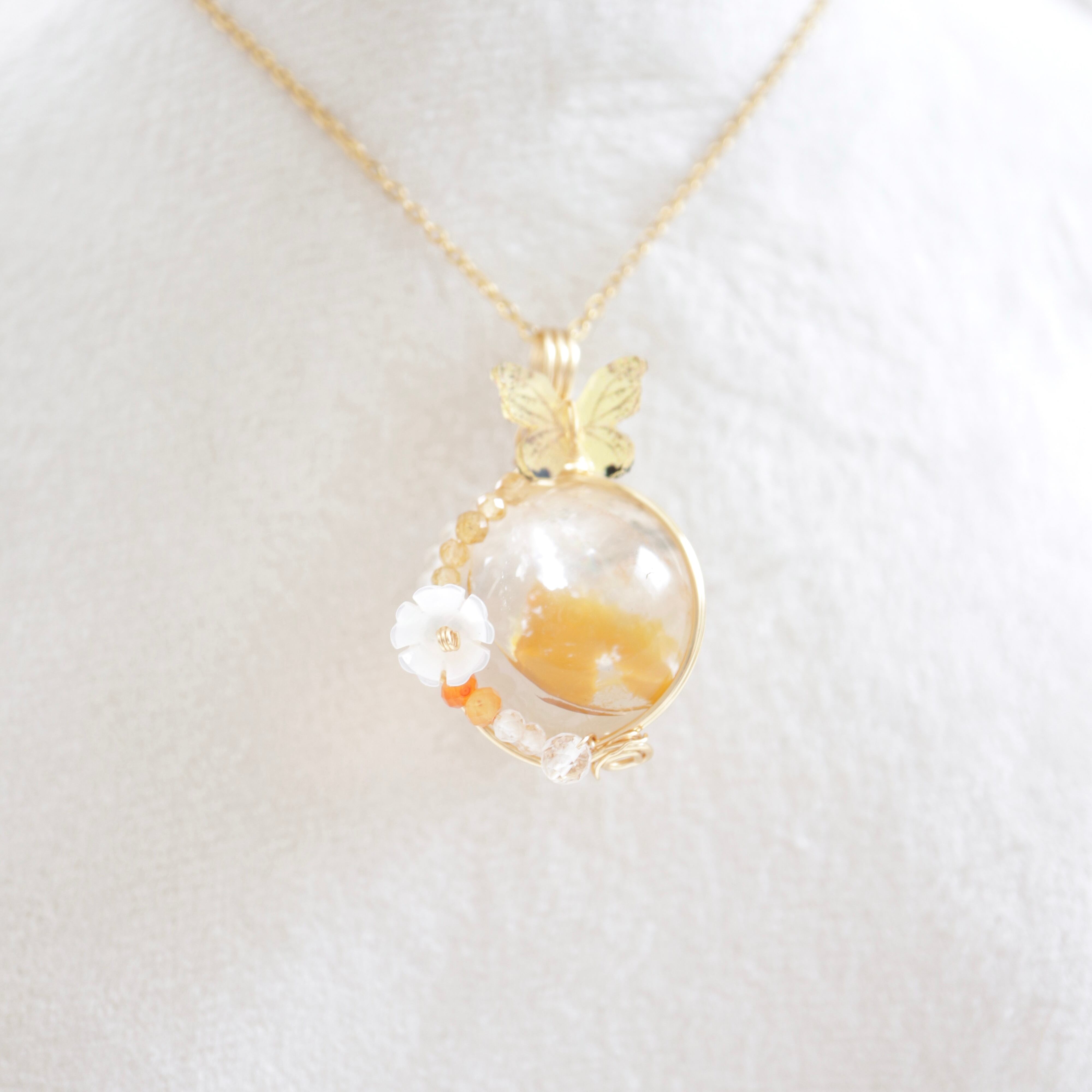 【1点もの】ライモナイトインクォーツ《春告げの雫》|蝶が舞う天然石ペンダント