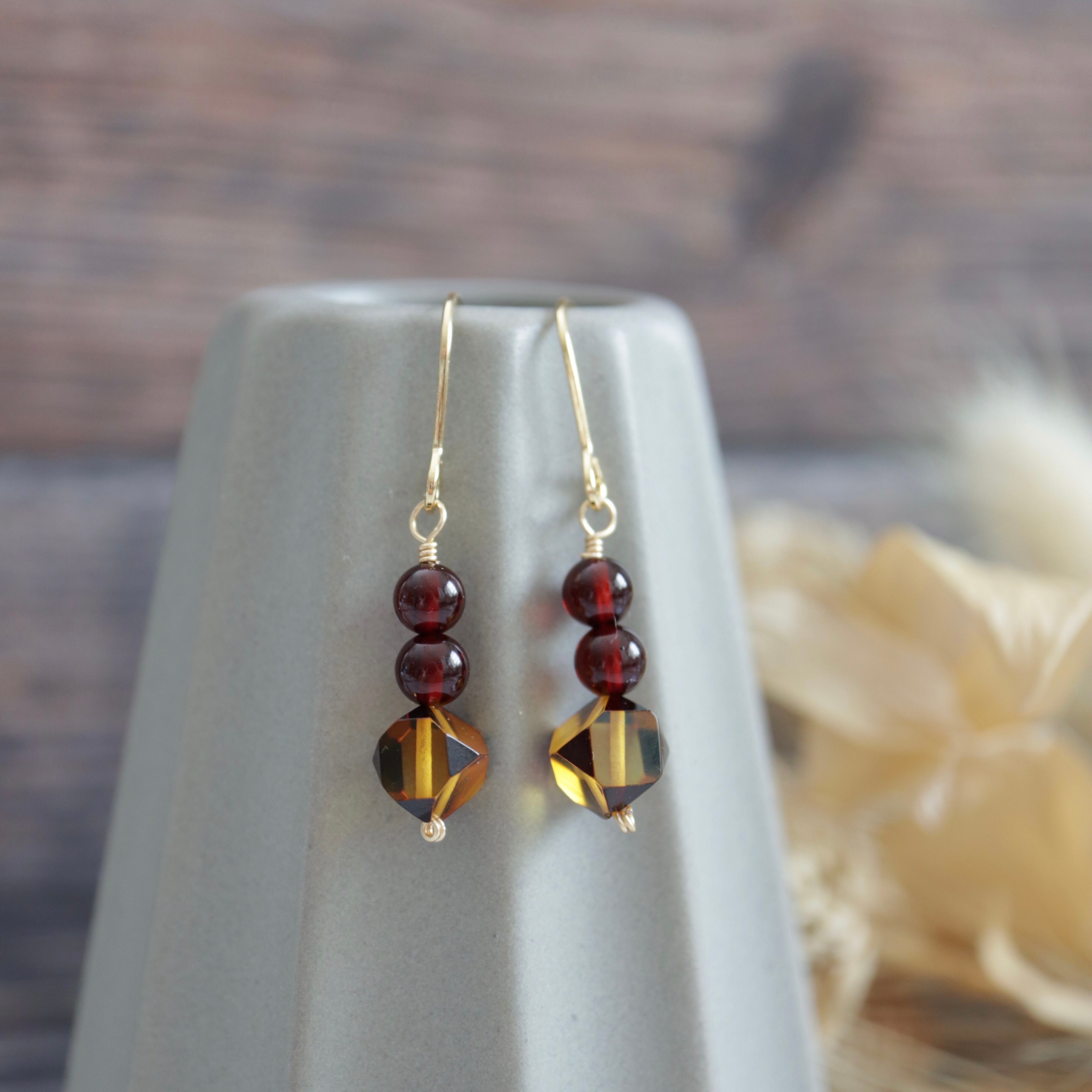 黄金色に透き通る琥珀と、深い赤茶の琥珀を組み合わせた、特別なセットアクセサリー。