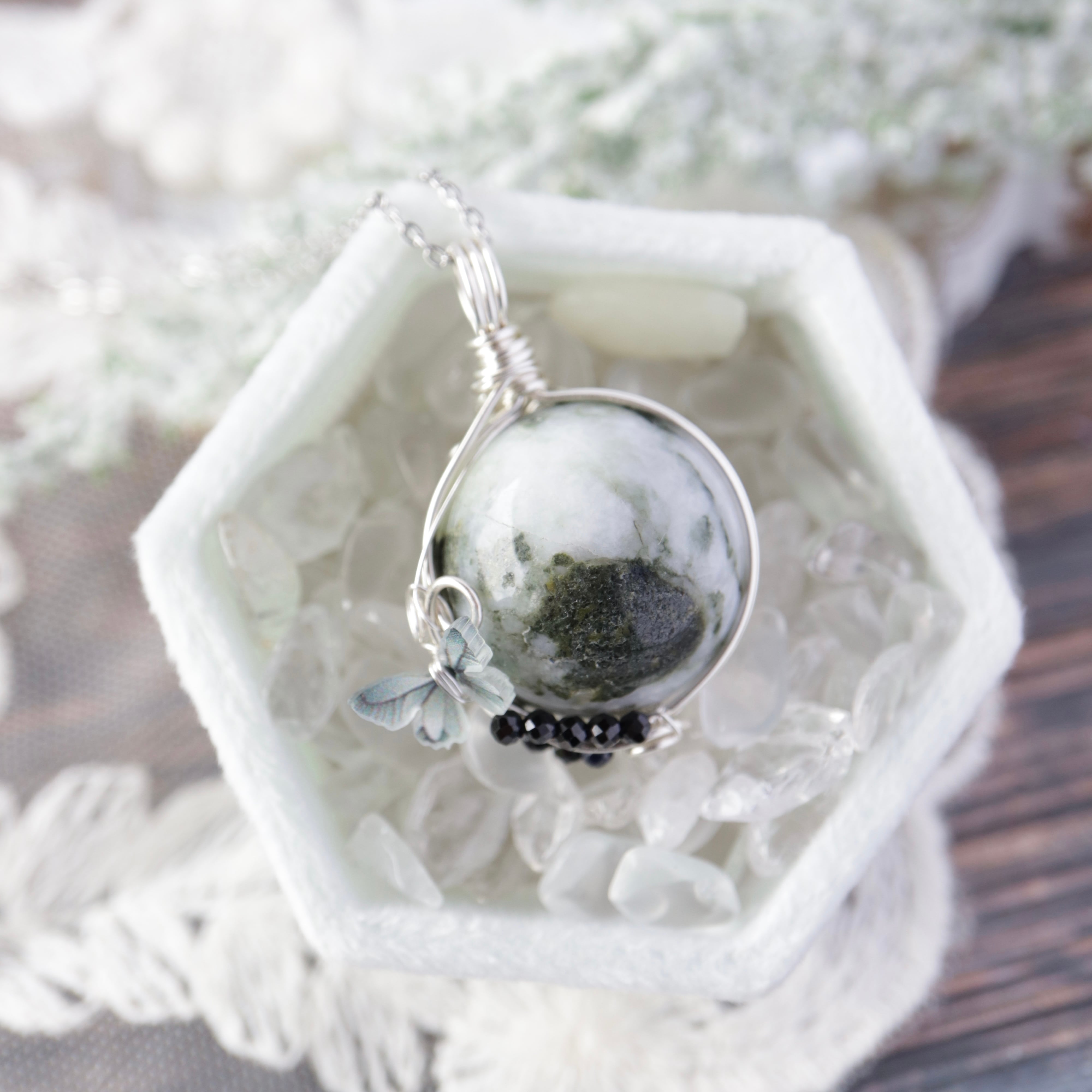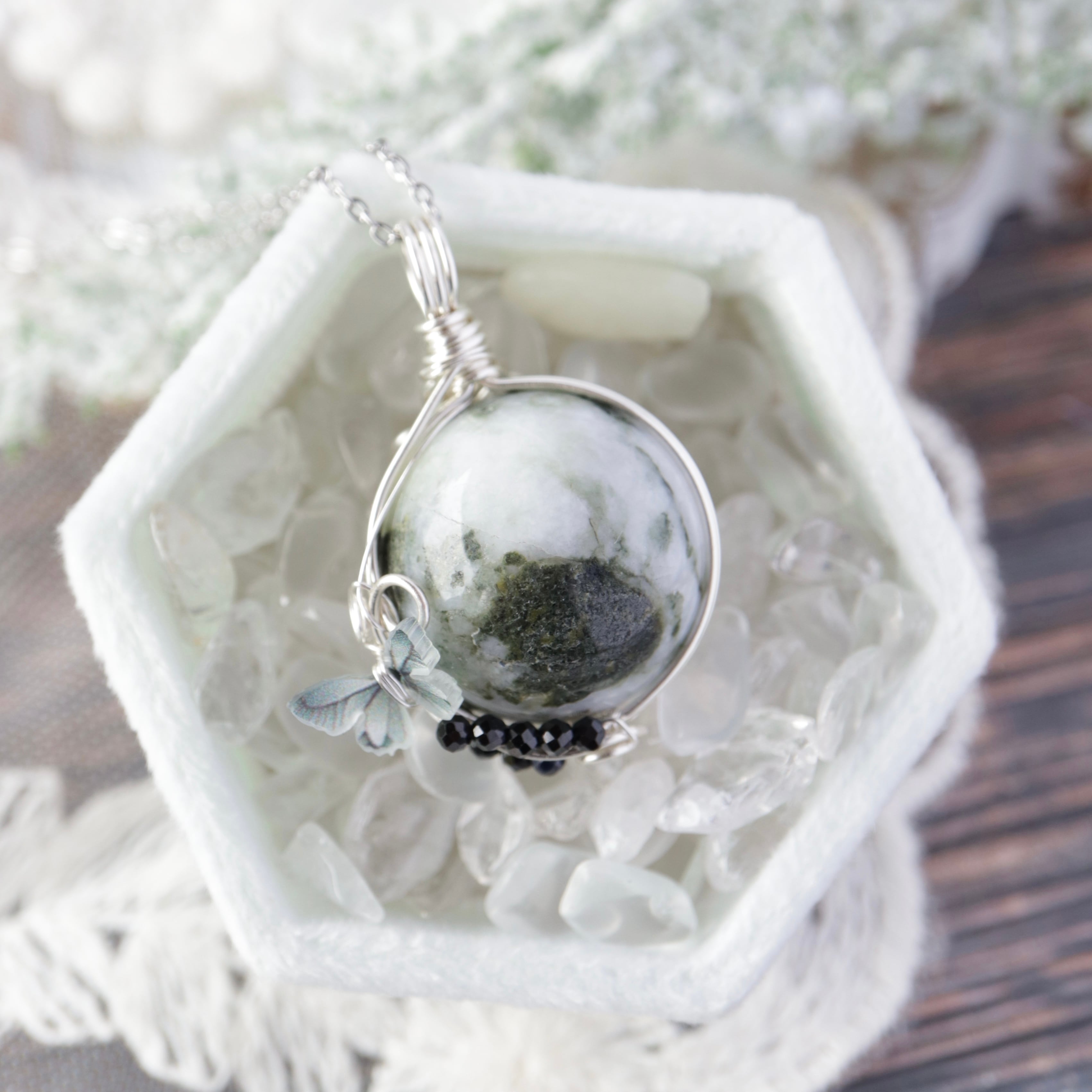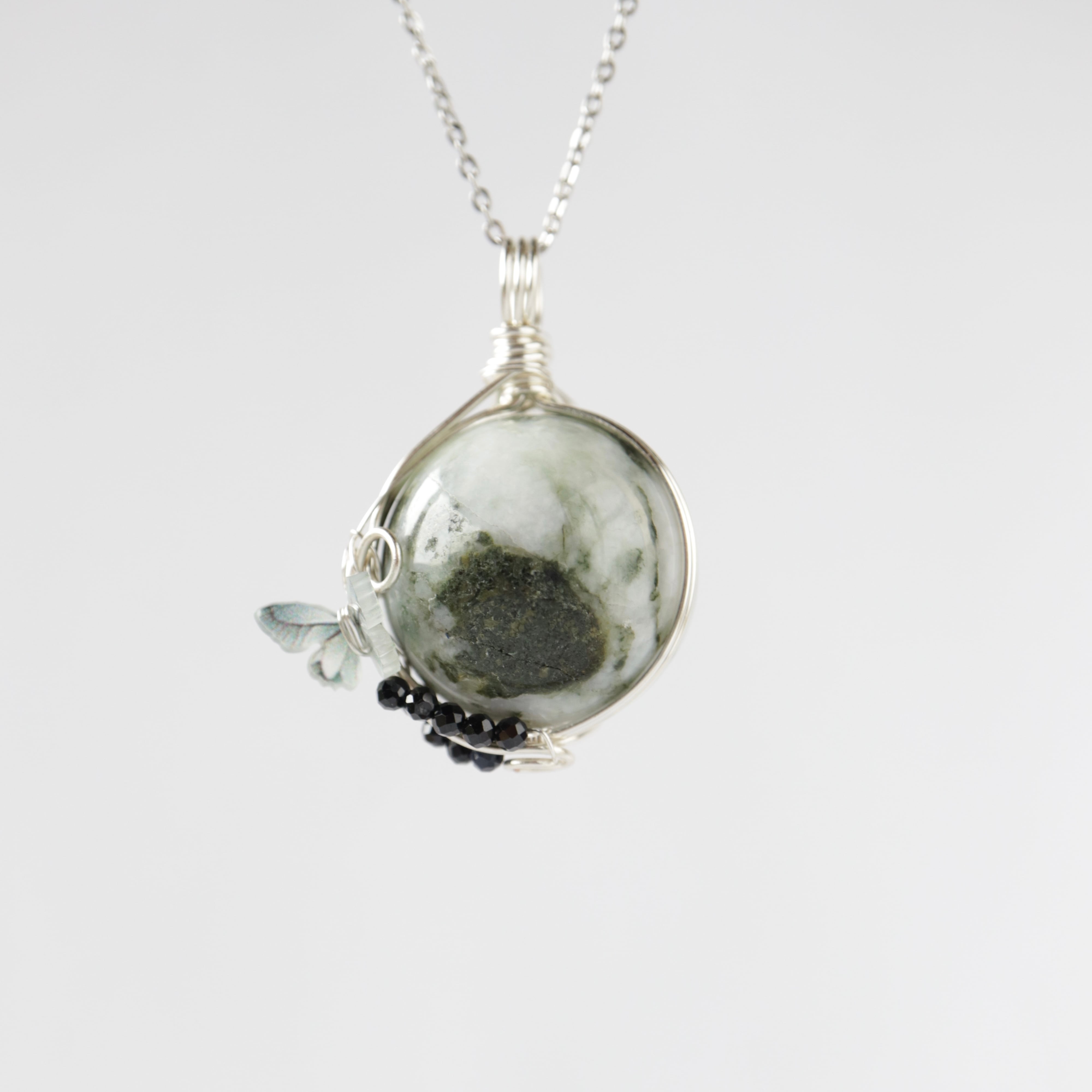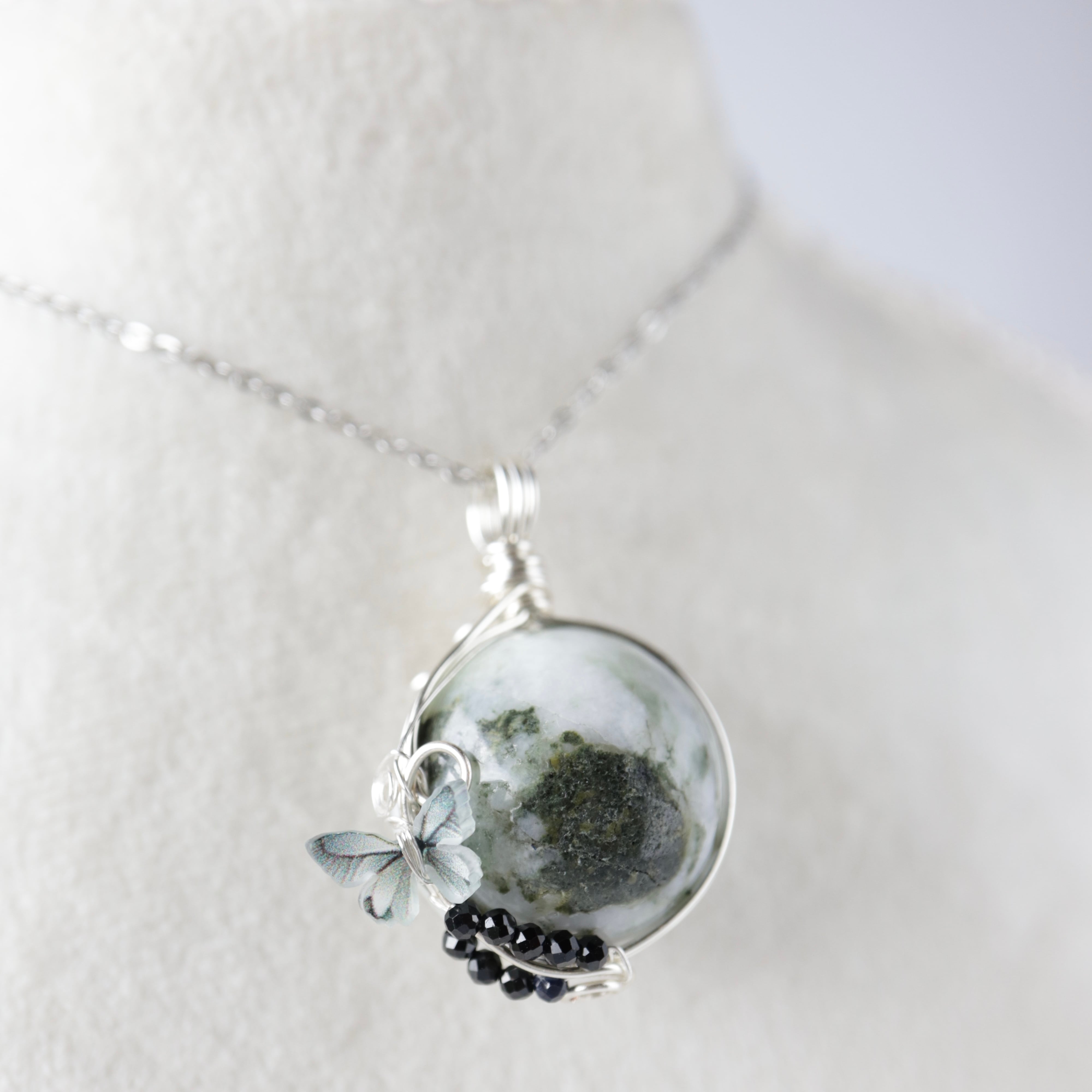 【1点もの】伊勢青石と御白石《蝶の宿る庭》|神秘の青と祈りを宿す天然石ペンダント