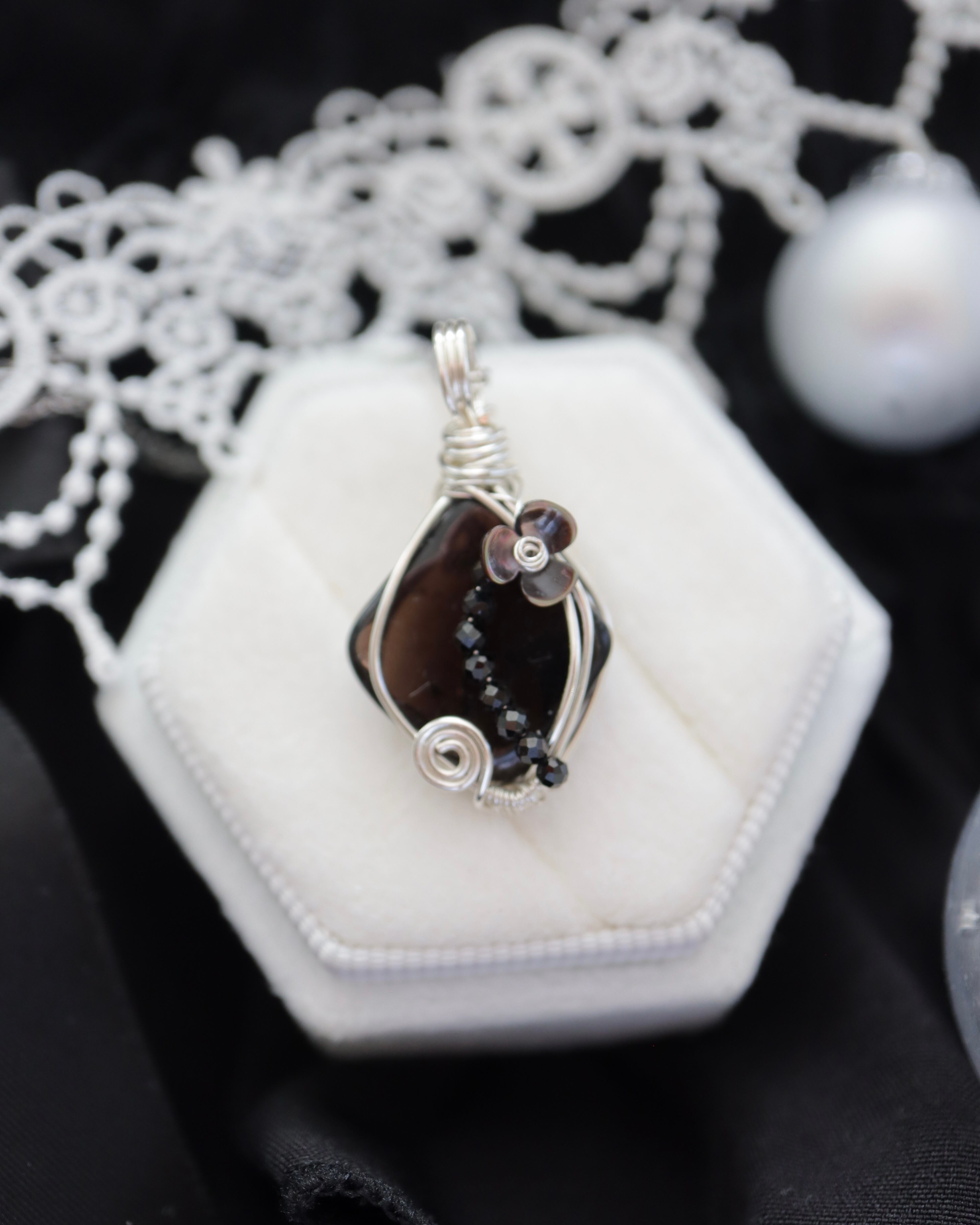 山梨県・黒平鉱山で採掘された、国産の黒水晶を使用。