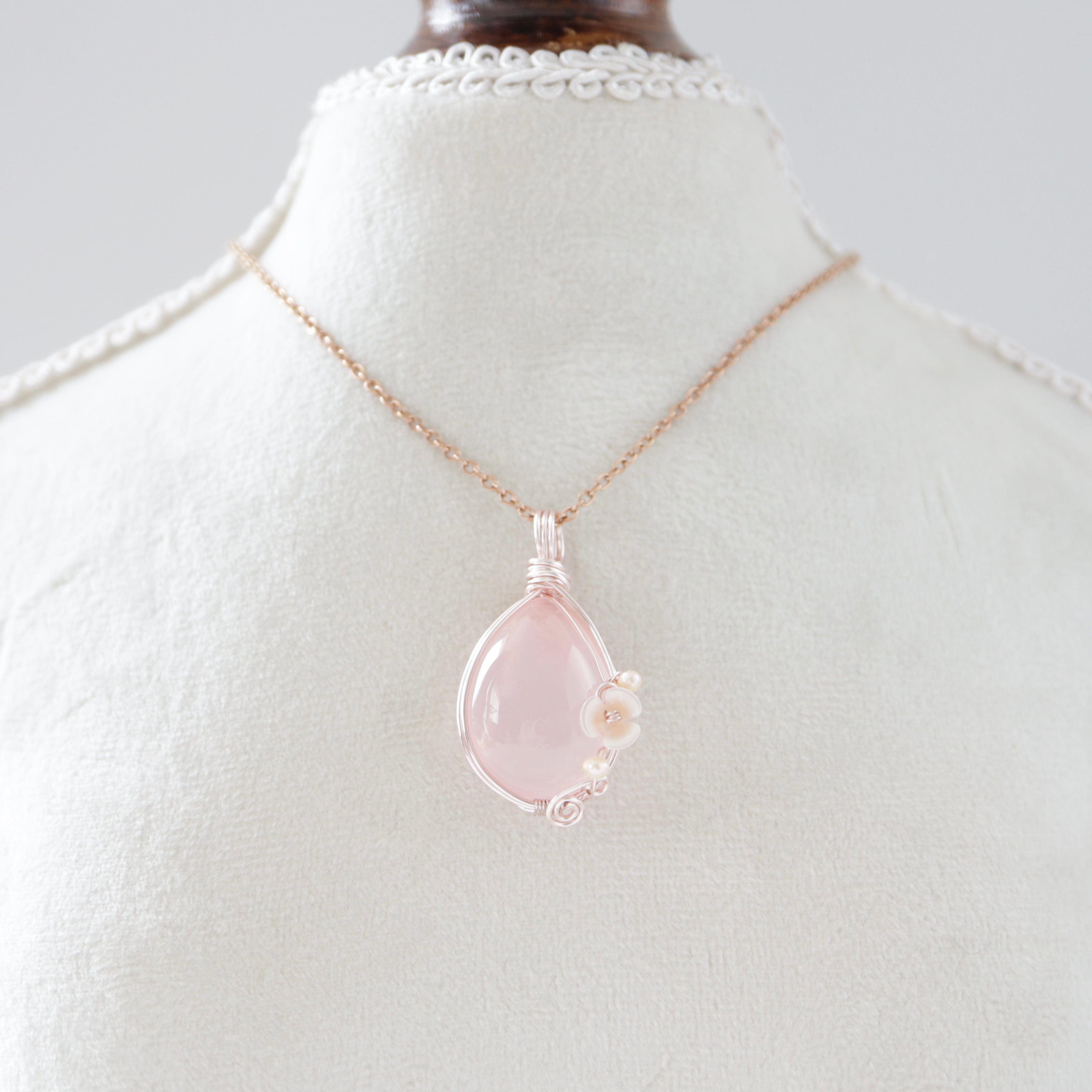 【1点もの】ローズクォーツ《淡雪の花雫》|やわらかな光をまとう天然石ペンダント