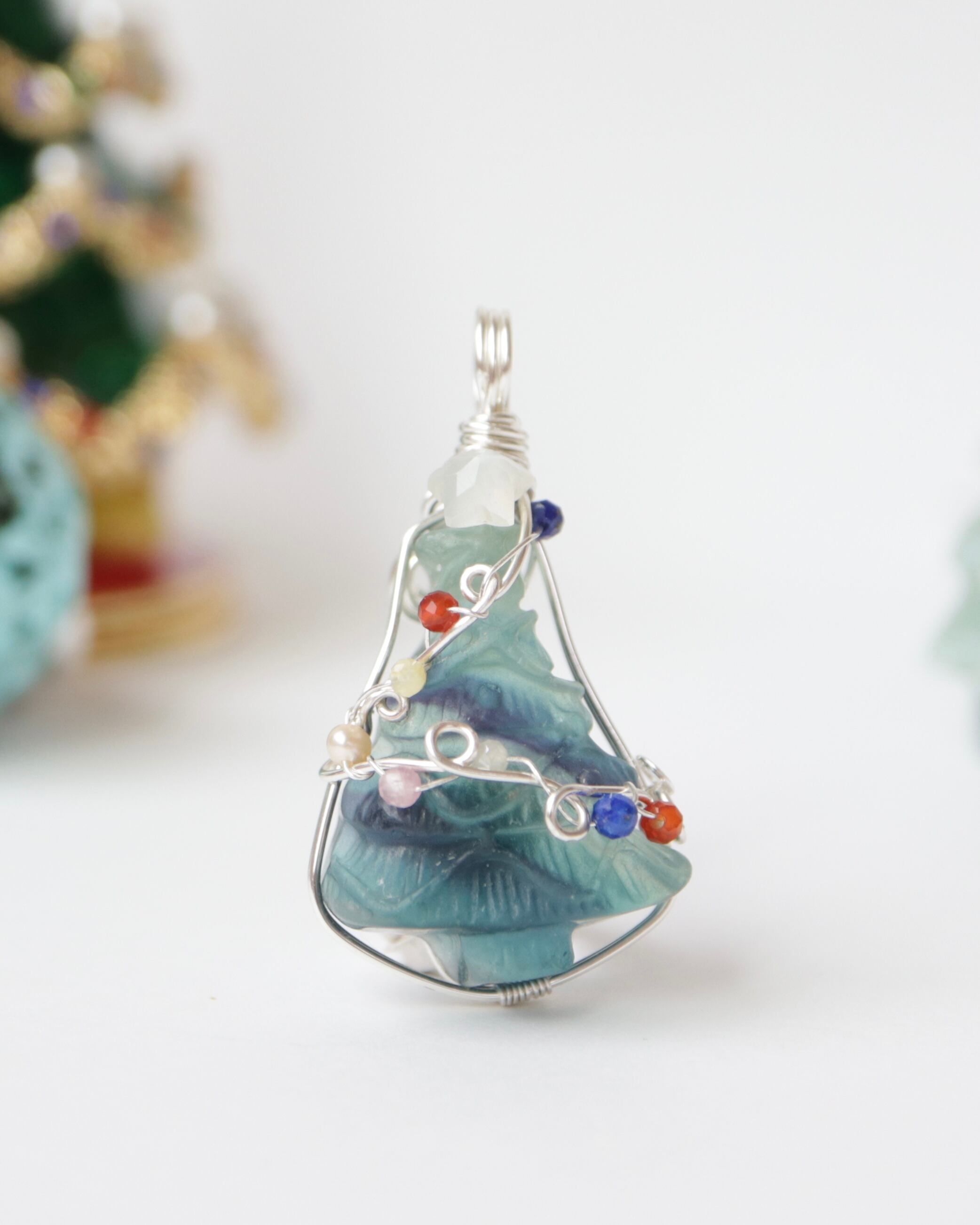 クリスマスだもの【1点もの】フローライト《冬灯の樹》|静寂をまとう天然石ペンダント