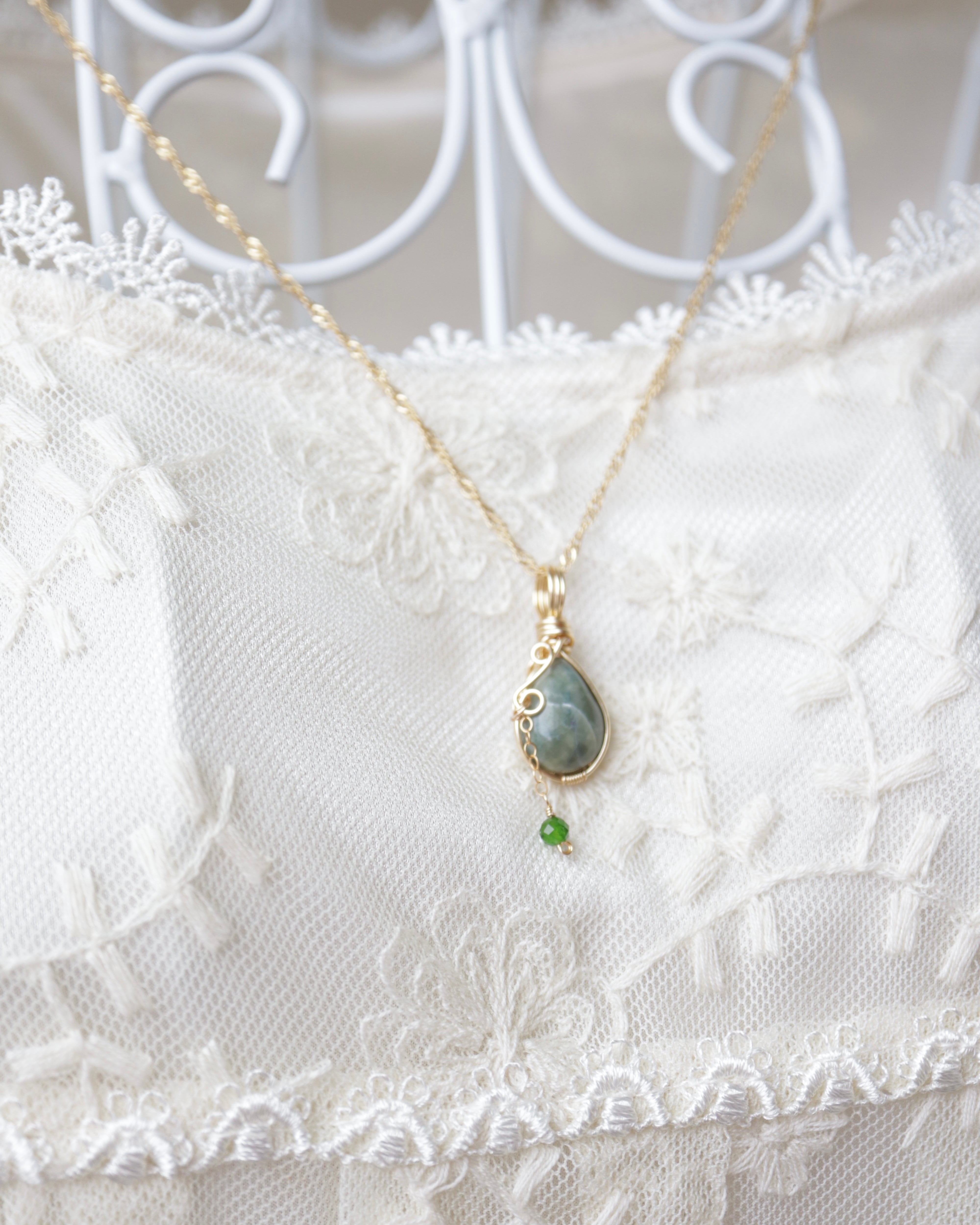 二つの緑が響き合う、世界にひとつだけのペンダントです。