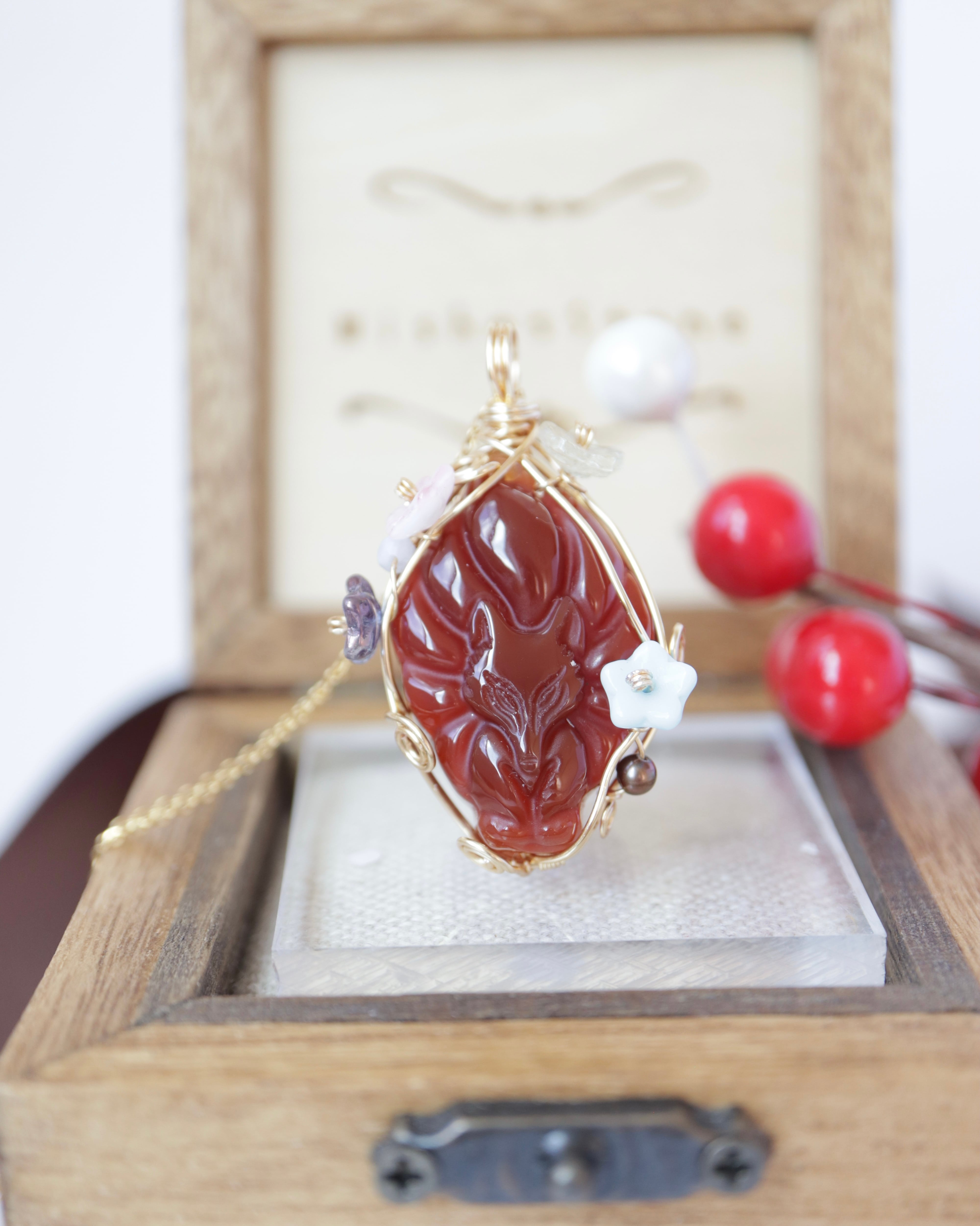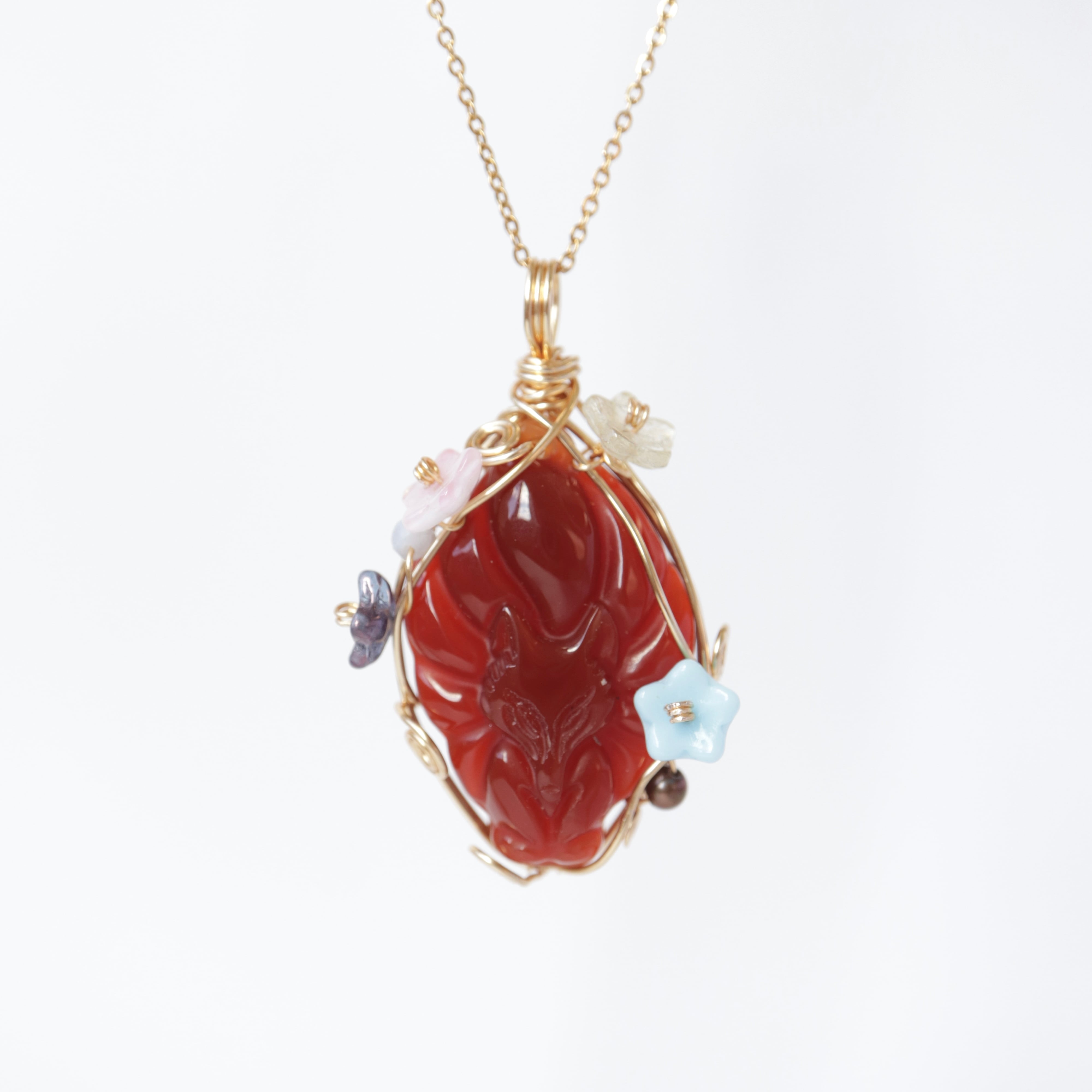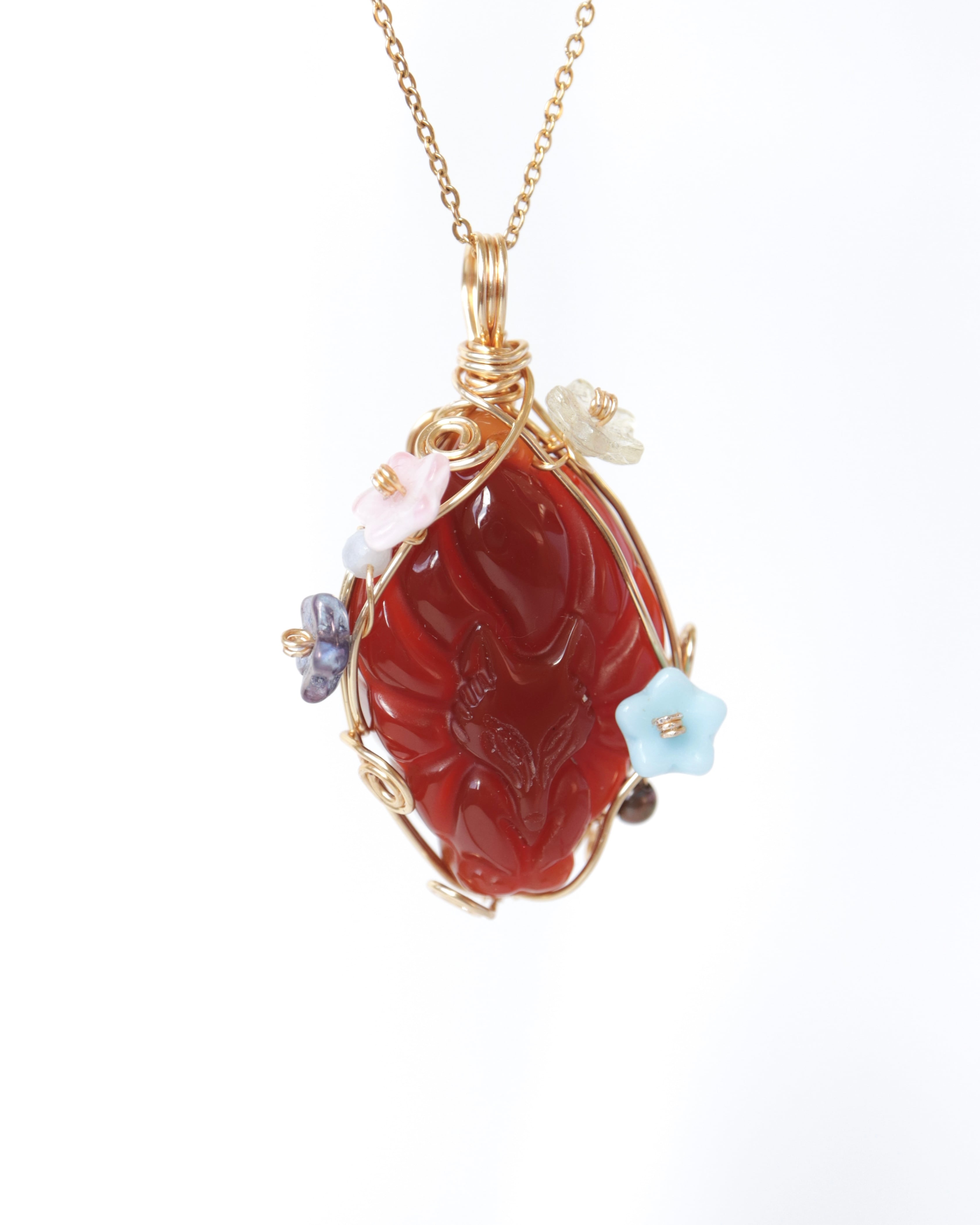 【1点もの】カーネリアン《緋色(ひいろ)の妖狐》|福を招く茜色の天然石ペンダント