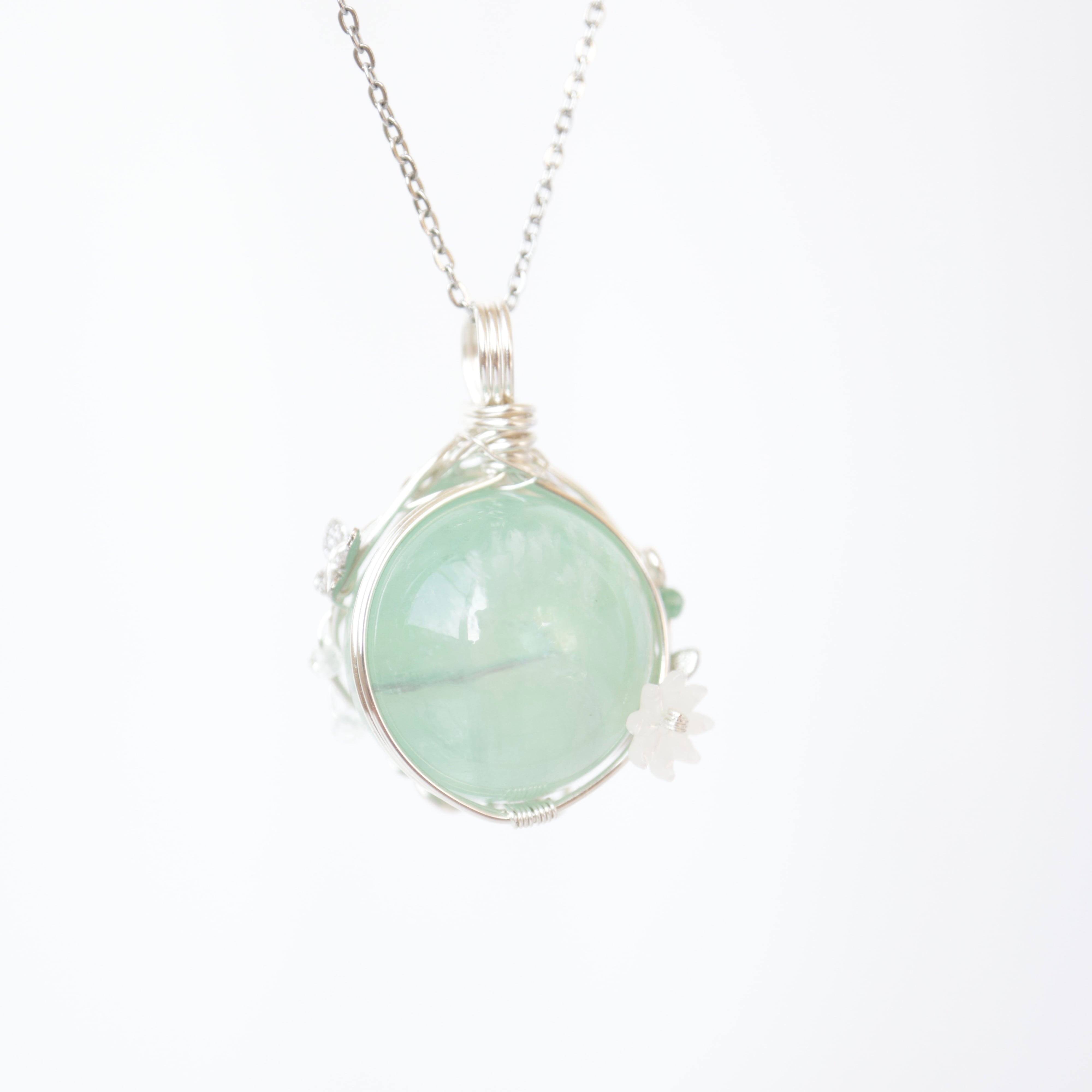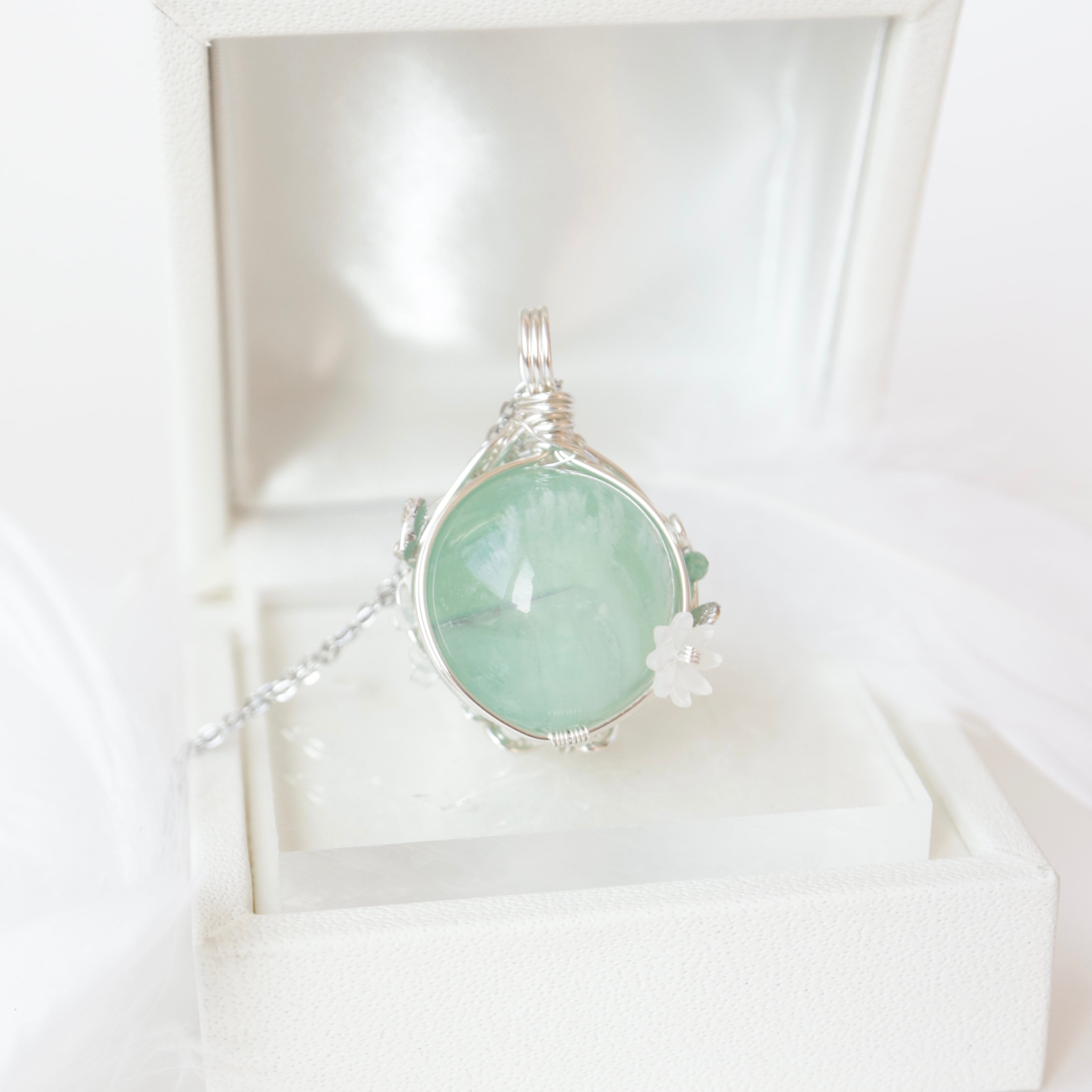 【1点もの】エンジェルフェザーフローライト《天使の微睡み》|心を癒す白花のペンダント