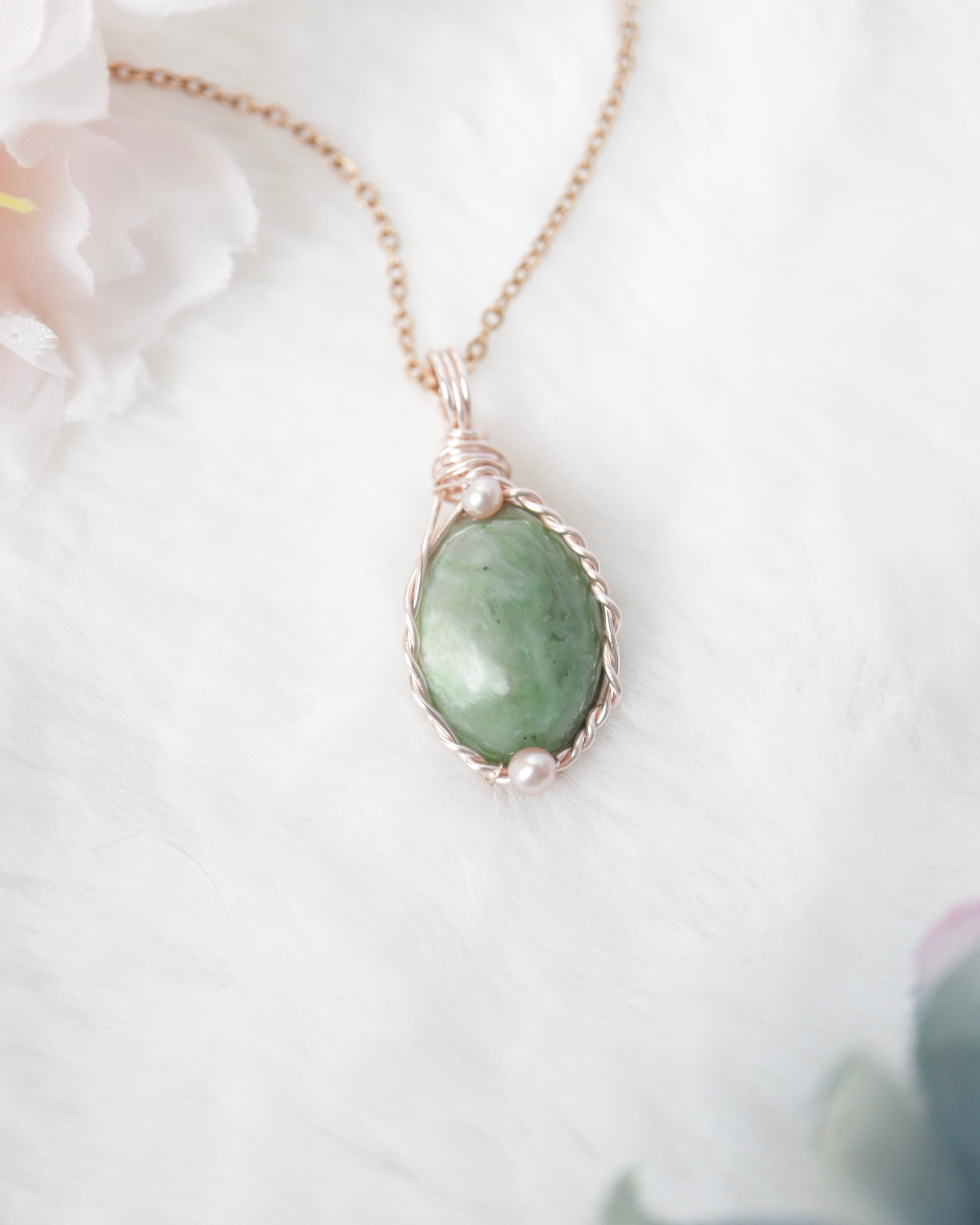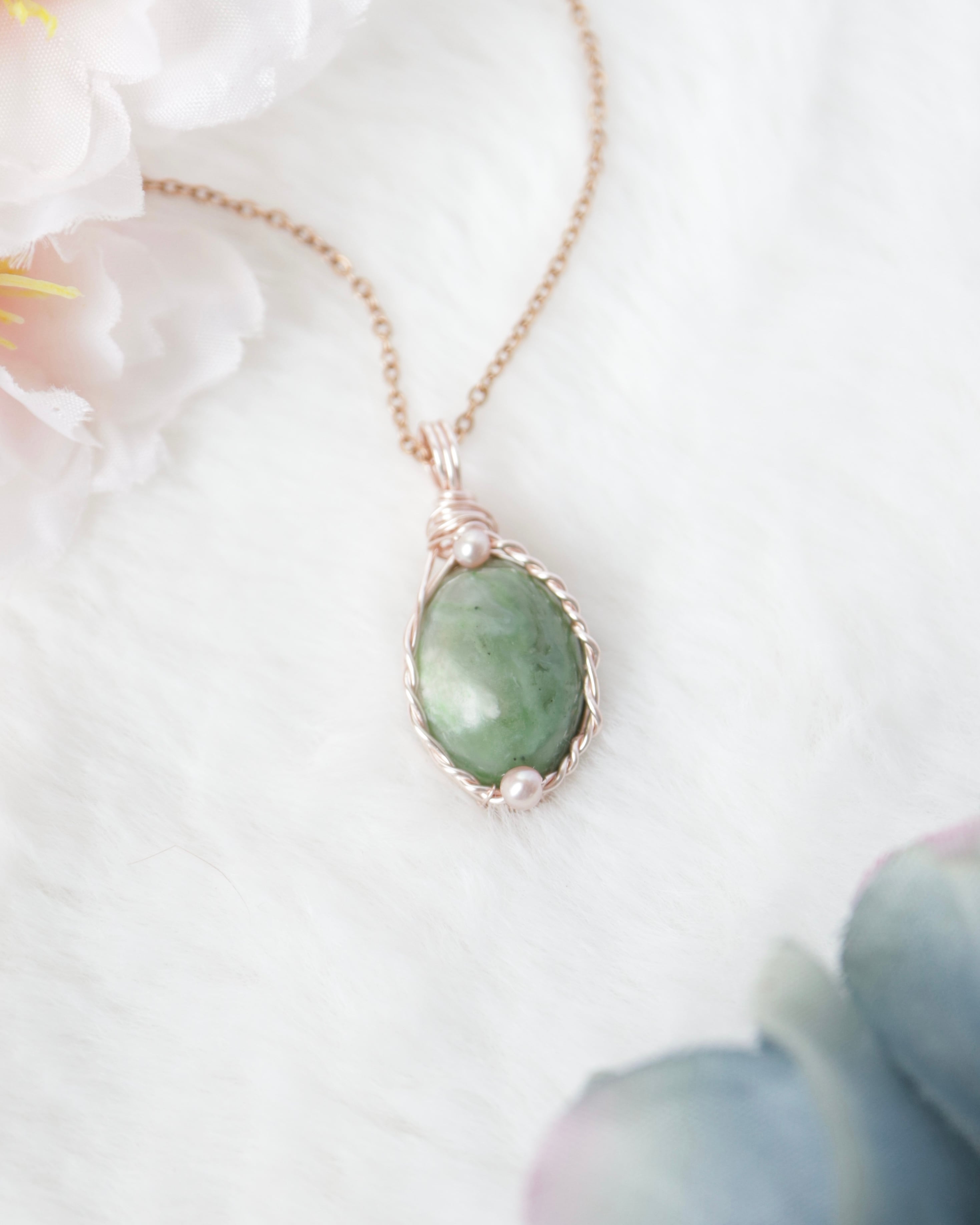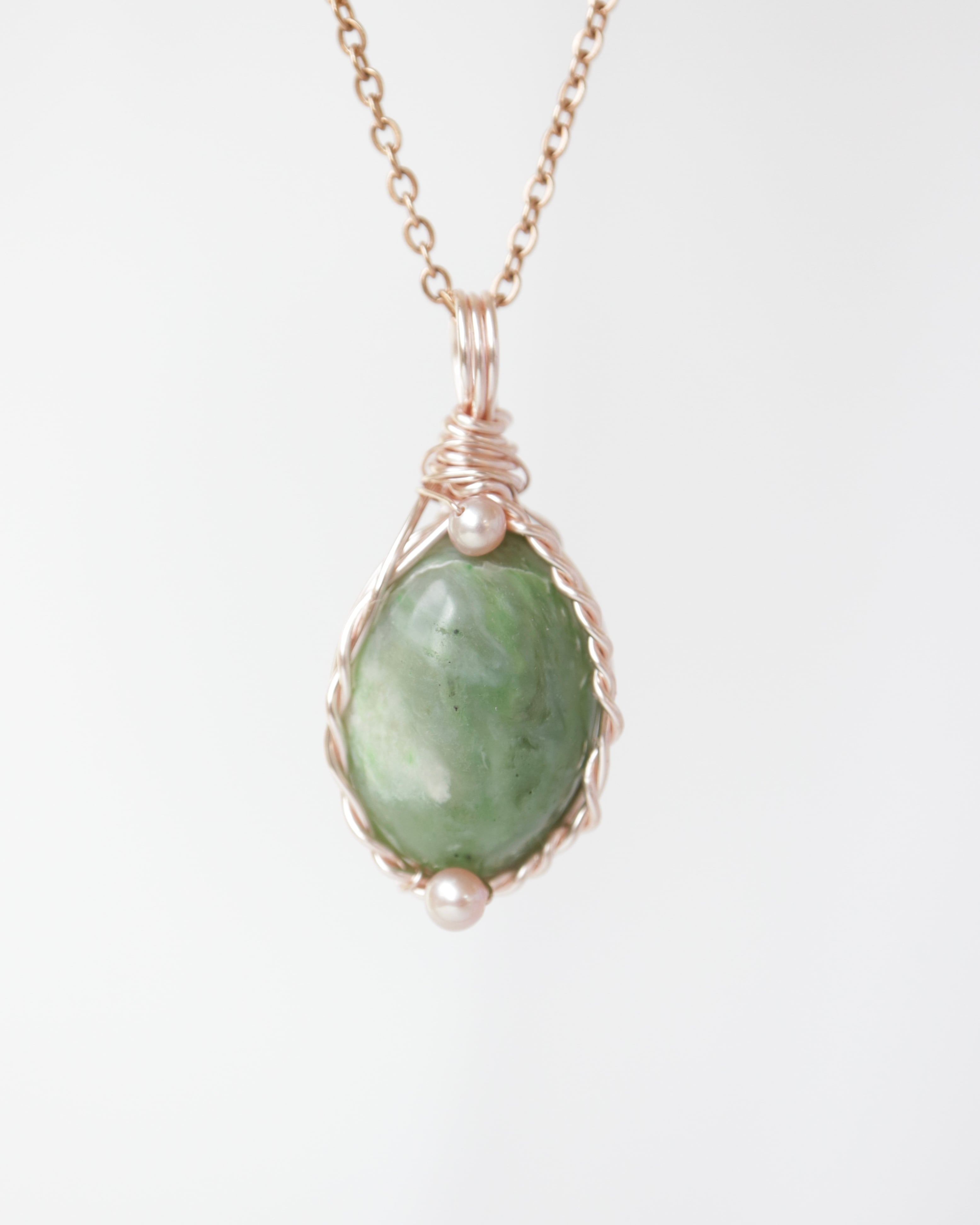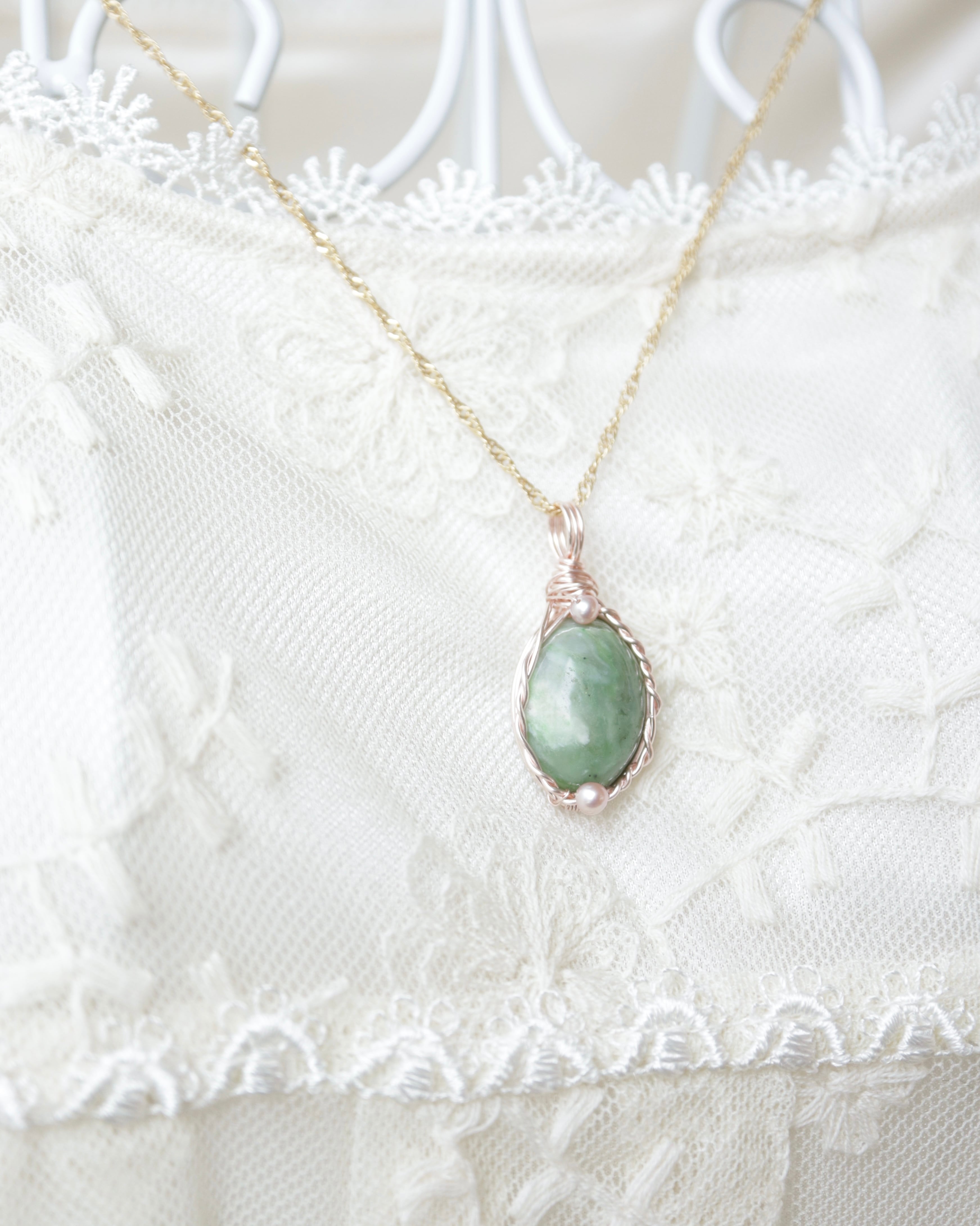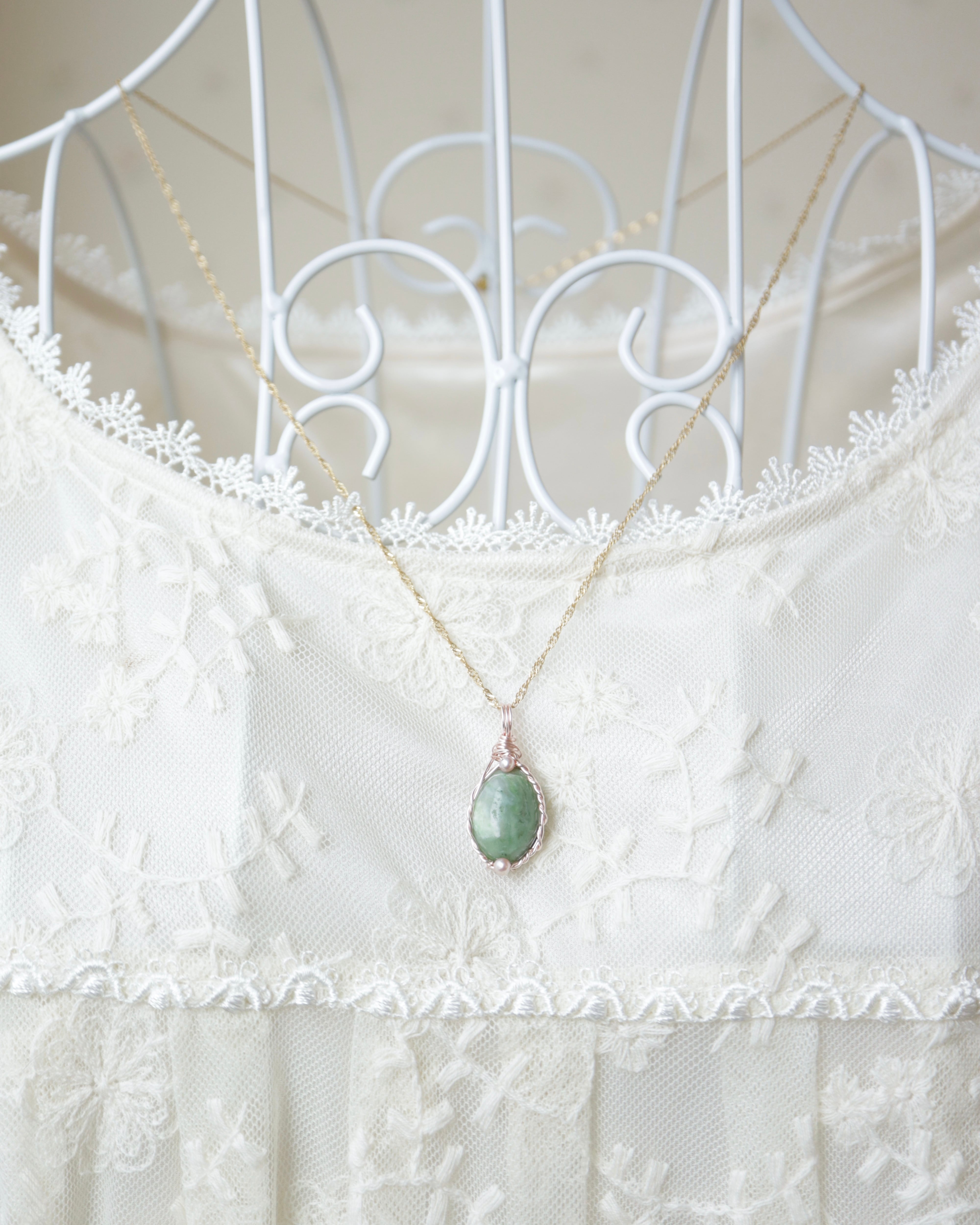 【1点もの】北海道産 日高翡翠《北の森の雫》|幻の国産石を纏うワイヤーペンダント