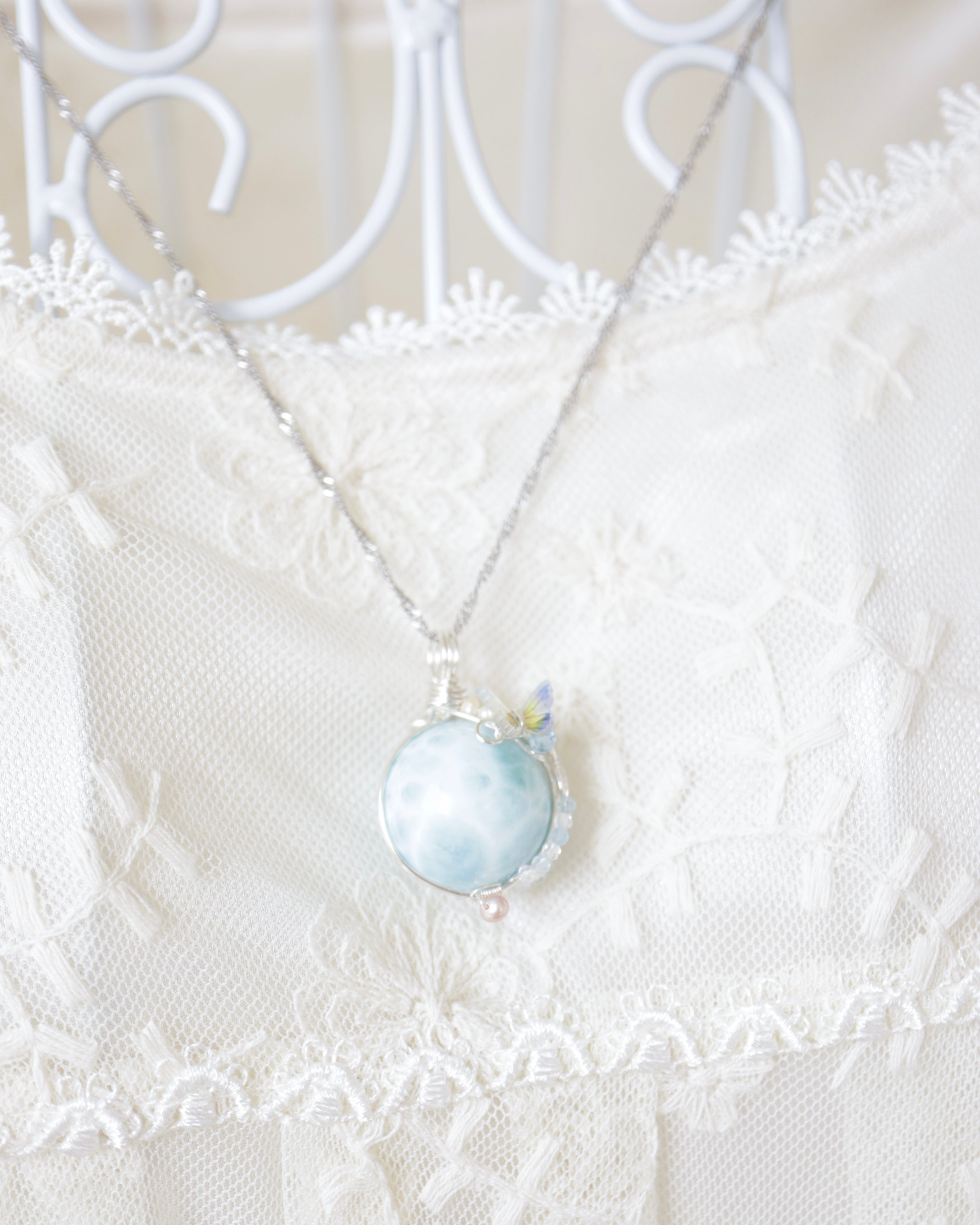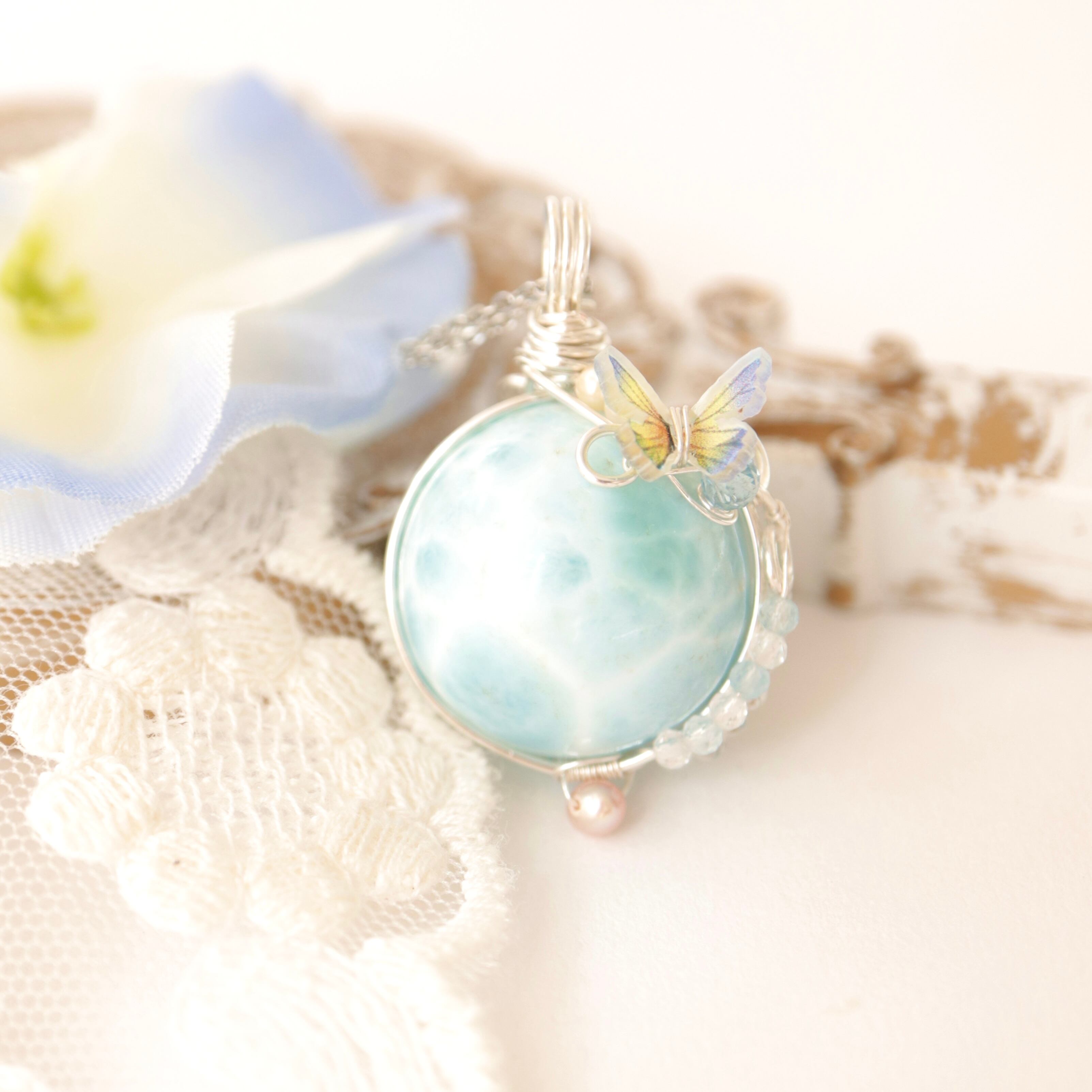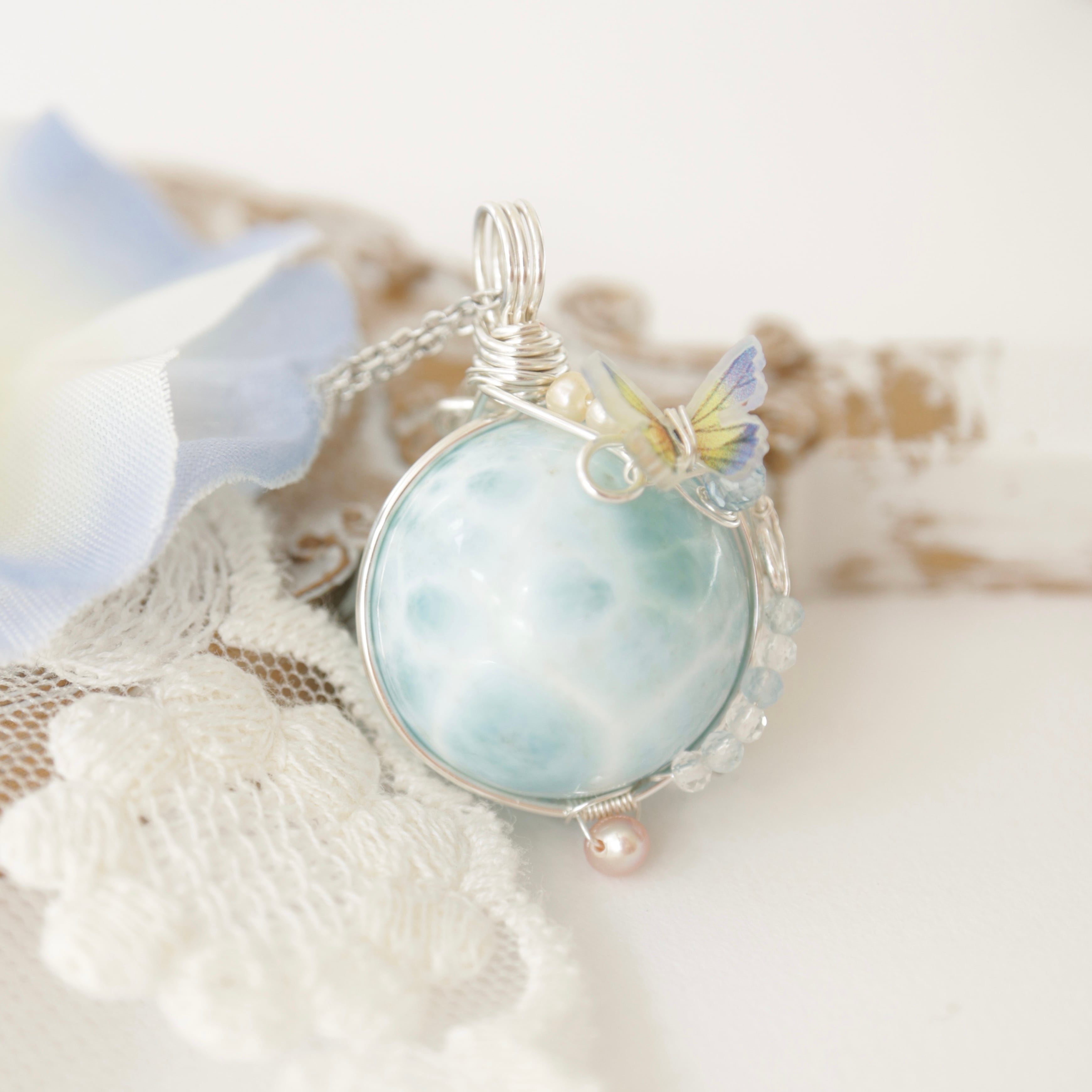 【1点もの】ラリマー《青空を舞う蝶の休息》|波紋に溶け込む天然石ペンダント