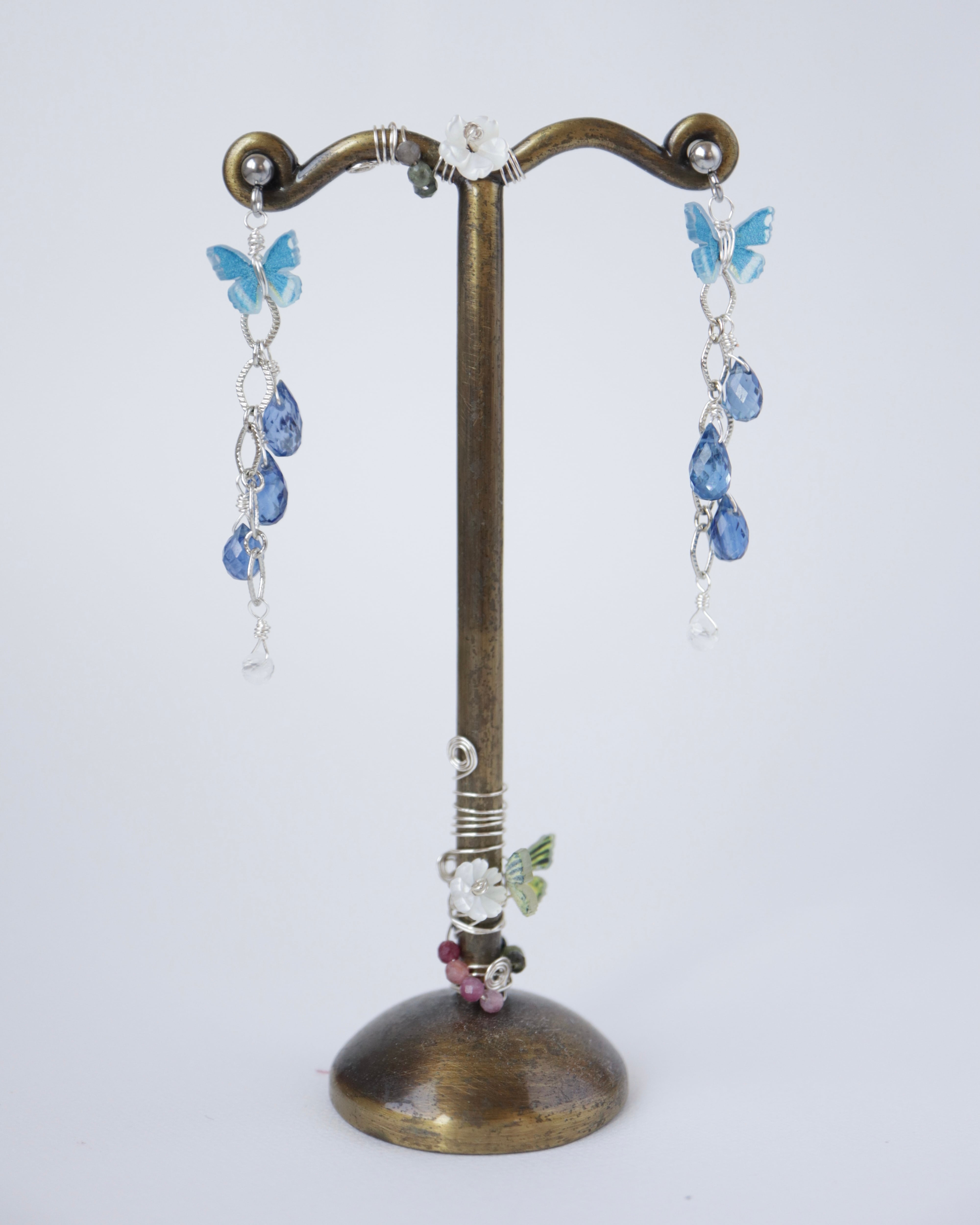 繊細なワイヤーワークがその澄んだ青色をより一層引き立てます。