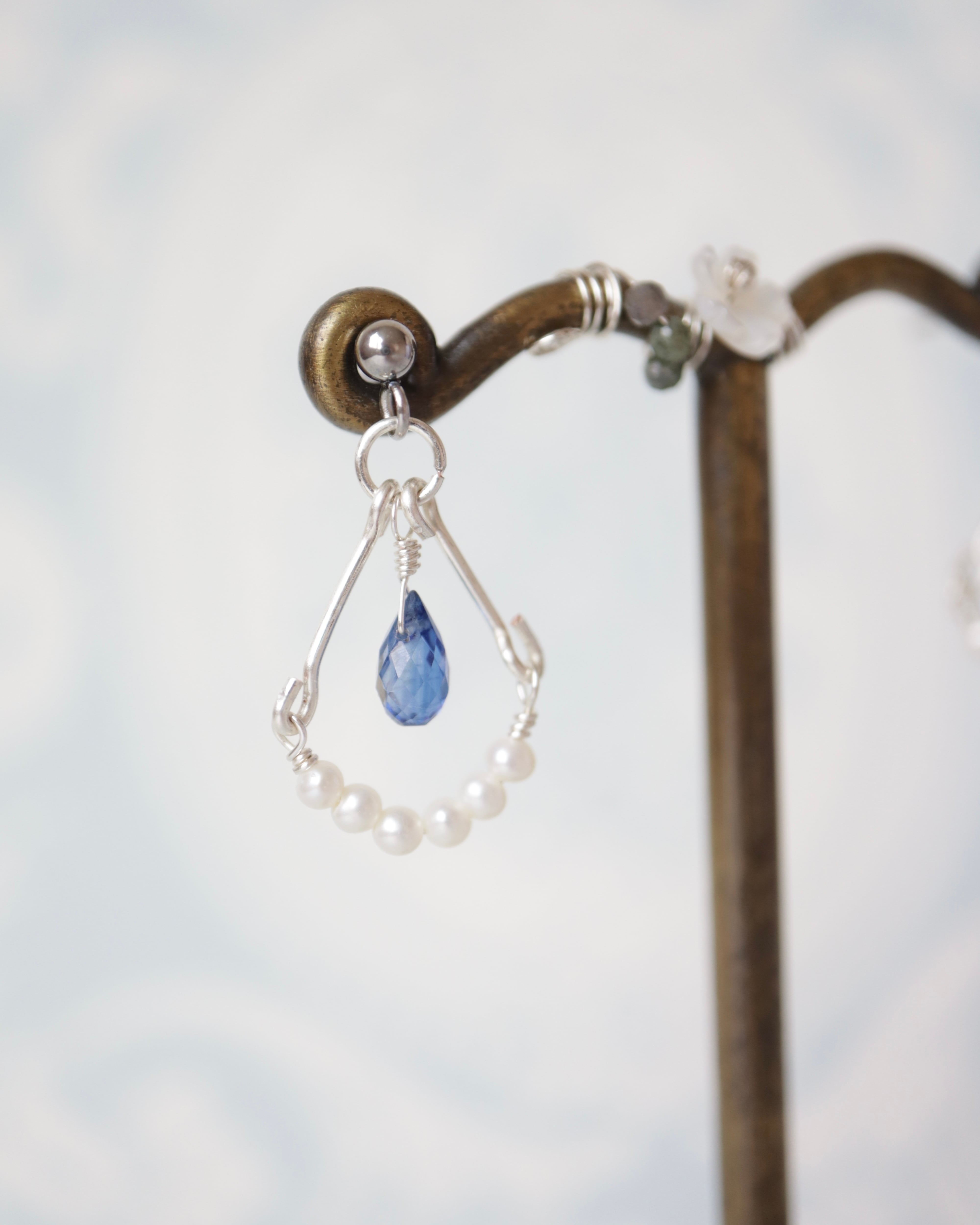 深い青の煌めき《蒼海(そうかい)の雫》|カイヤナイトとパールの天然石ピアス・イヤリング