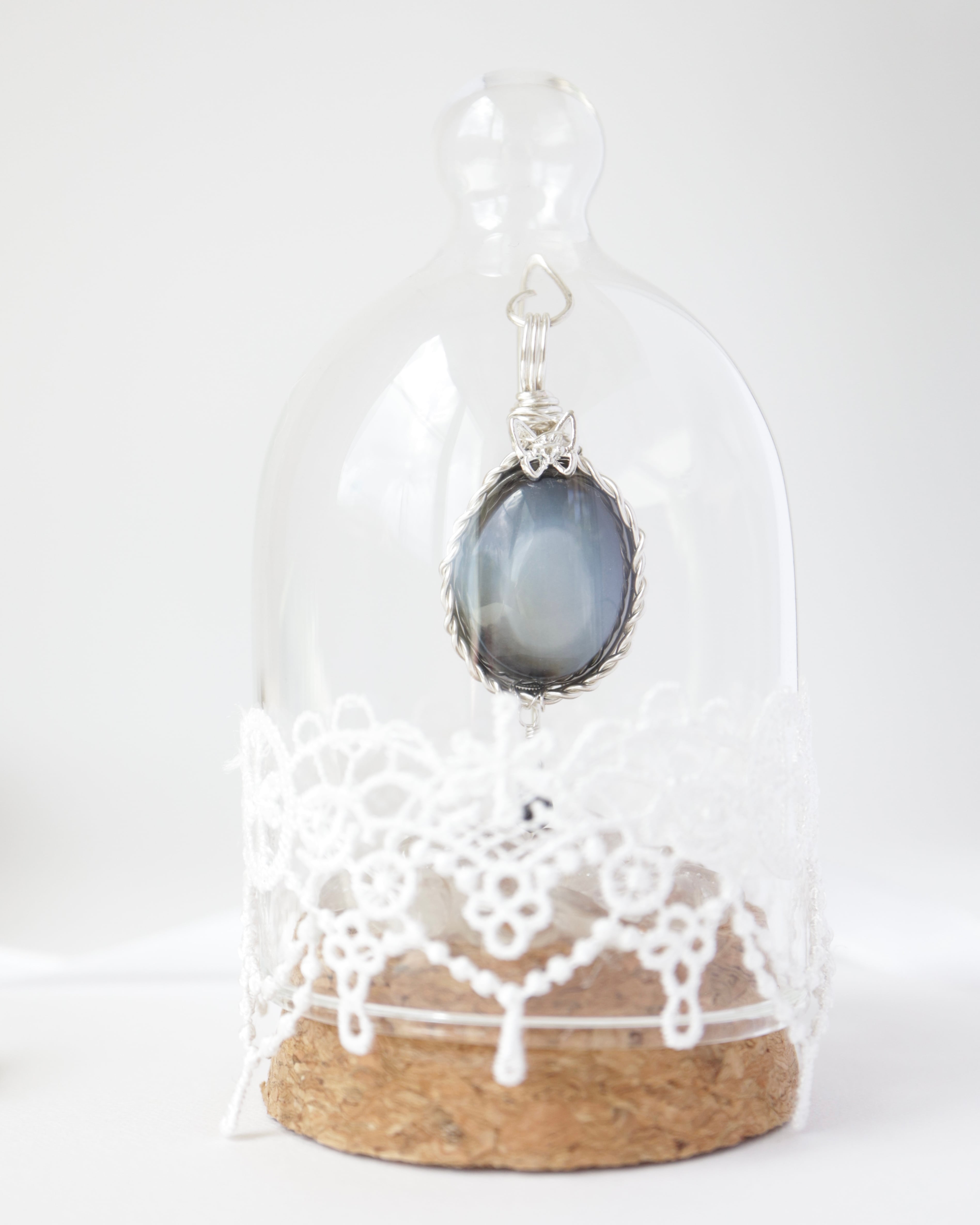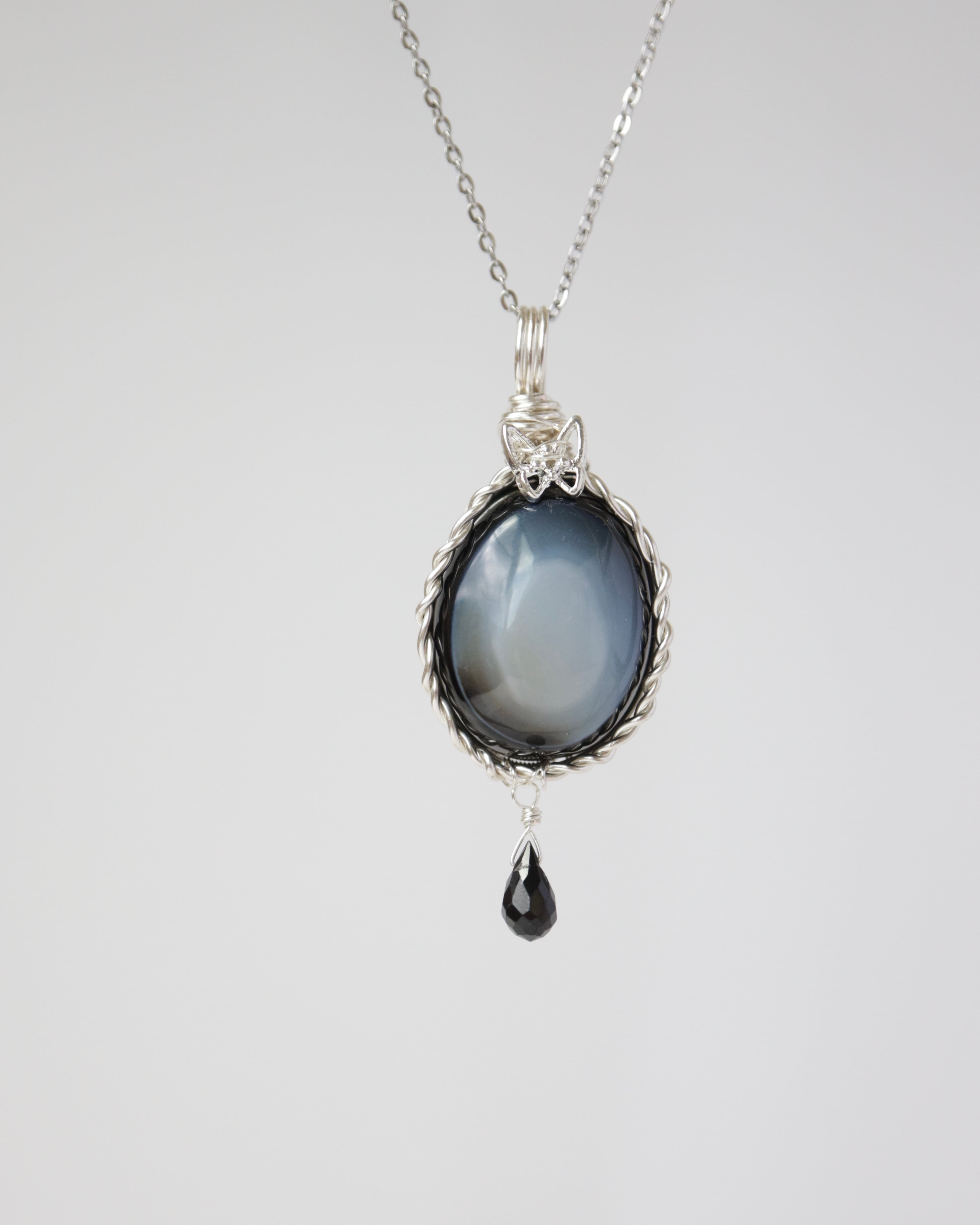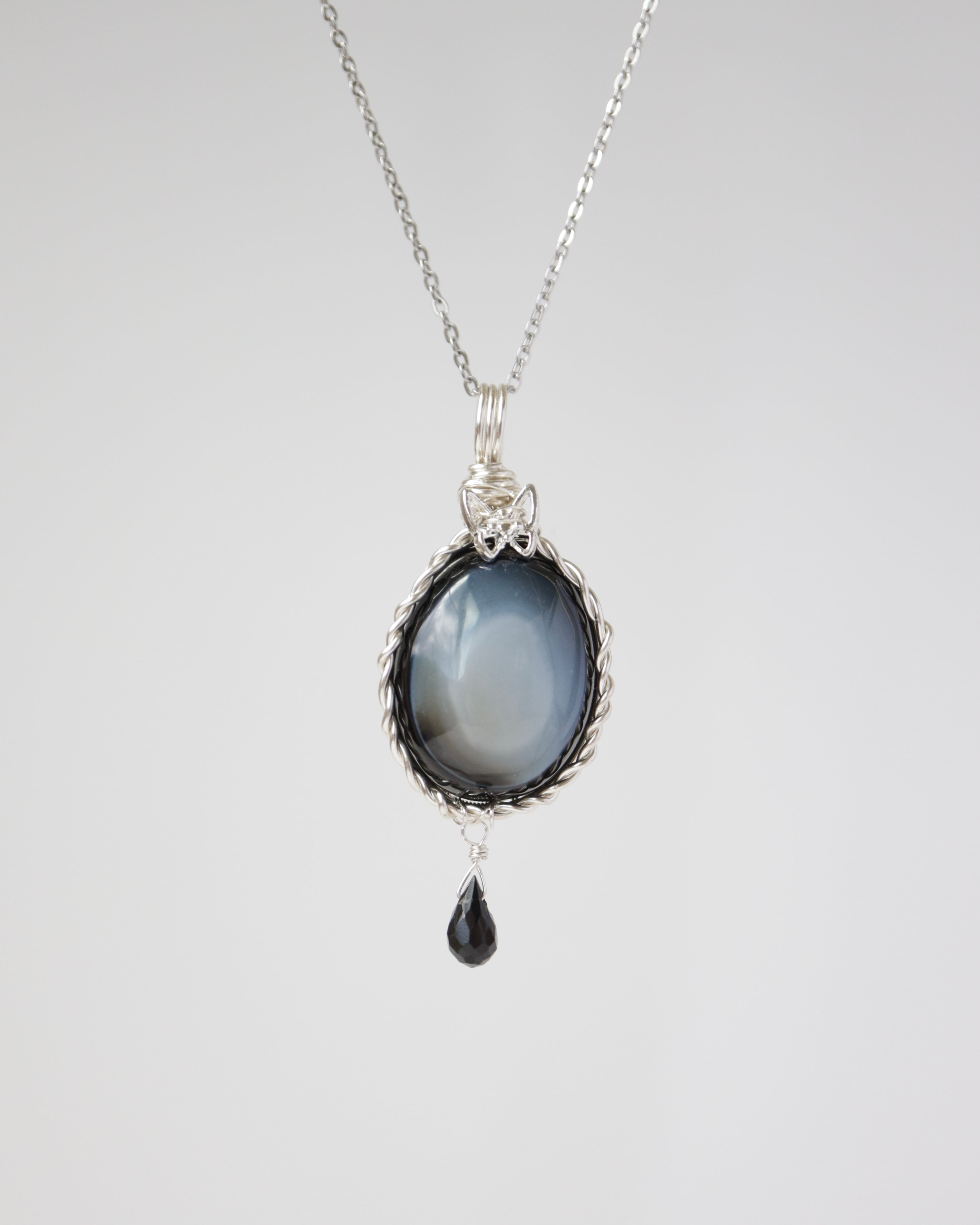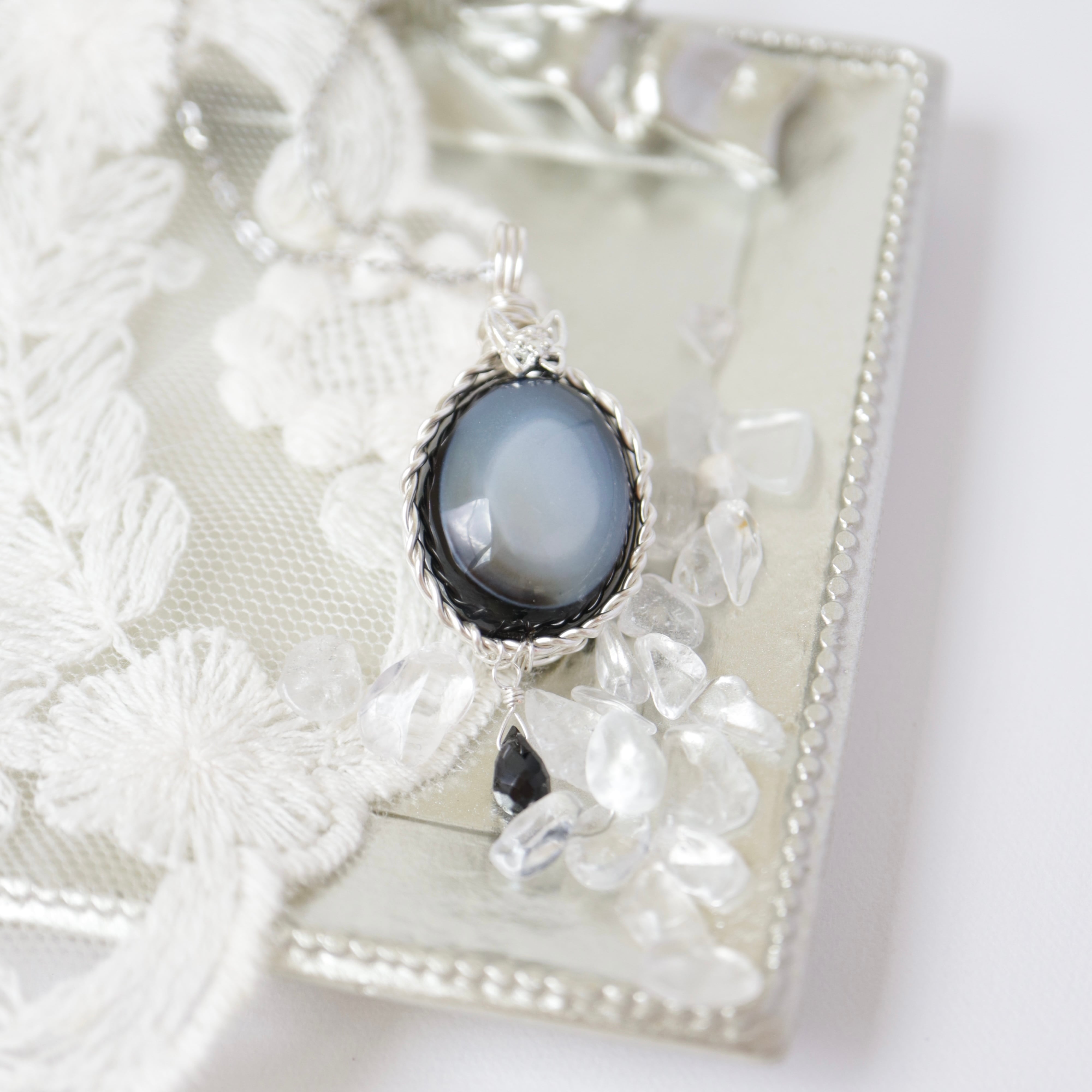 【1点もの】ブルーグレー瑪瑙《月夜の蝶》|静寂を纏う天然石ペンダント