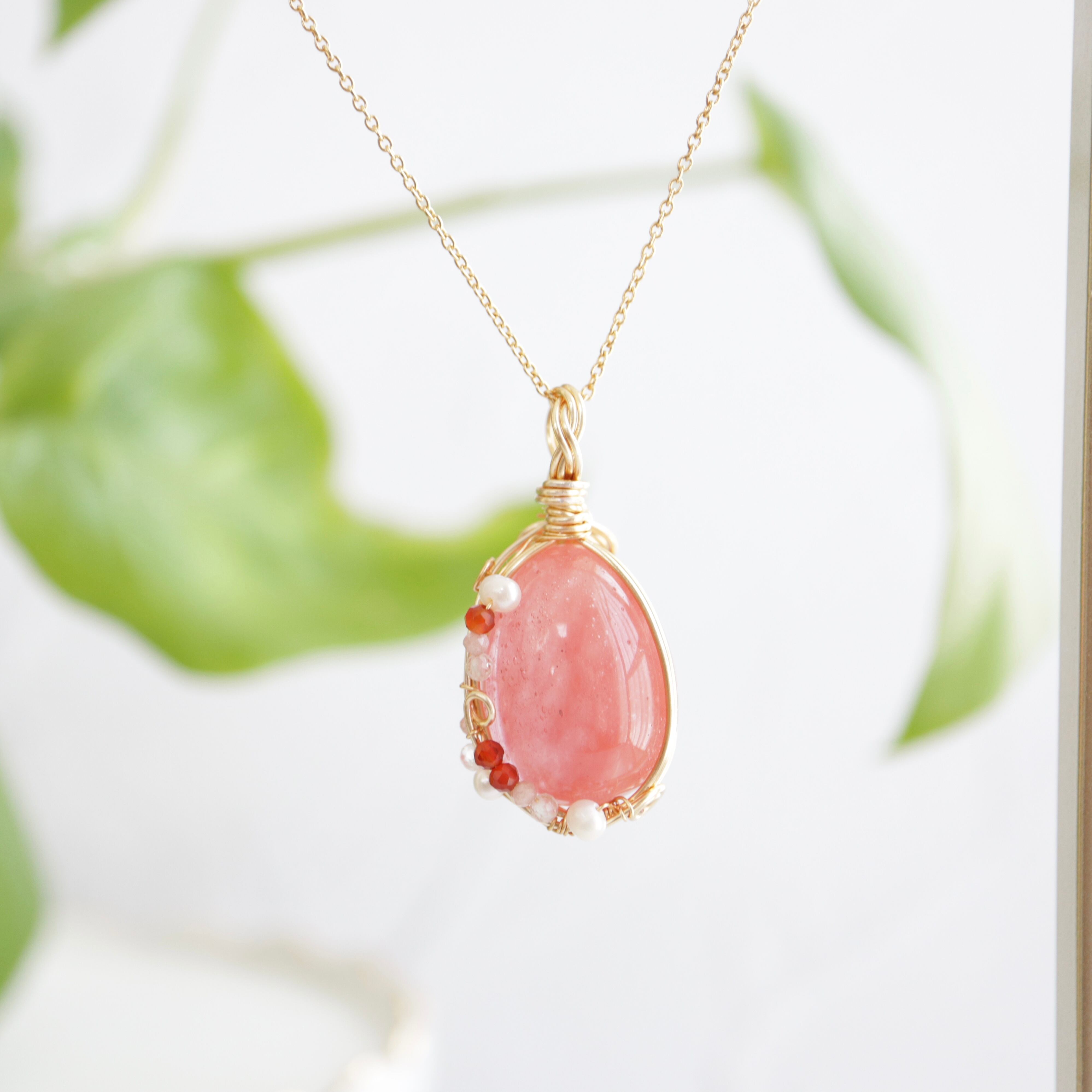 チェリークォーツ 玉子型 ワイヤーラッピング