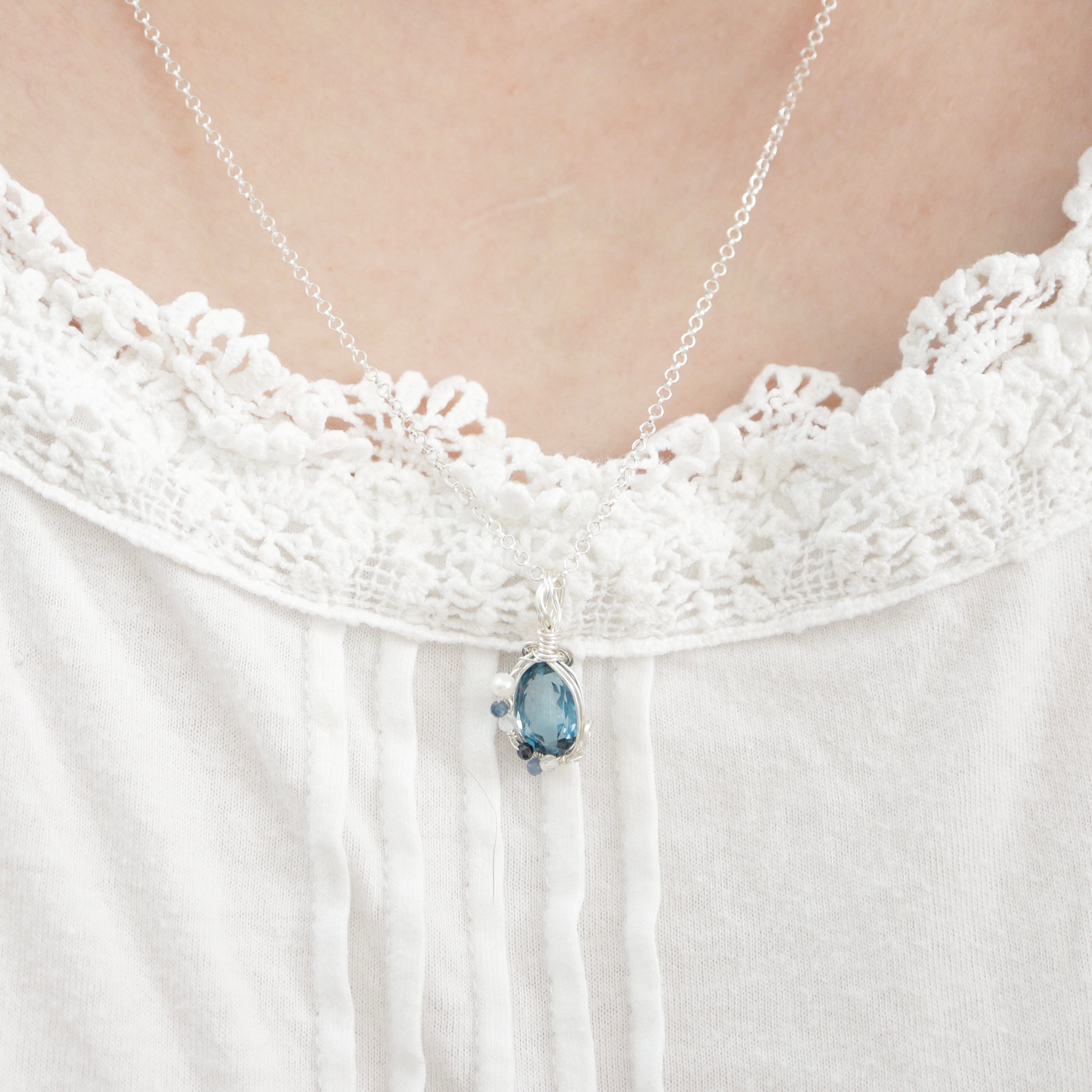 11月誕生石 ロンドンブルートパーズ ワイヤーラッピング ペンダント
