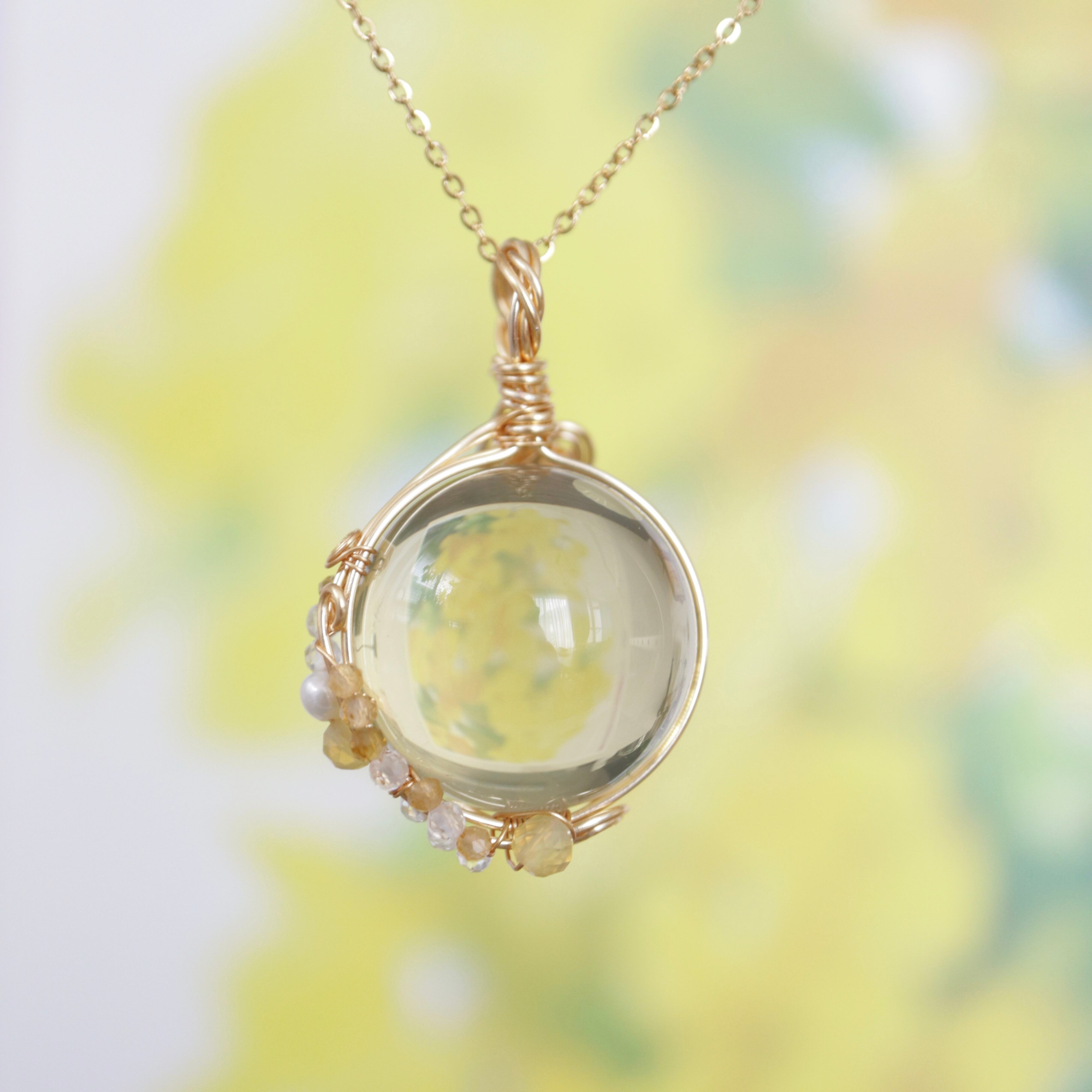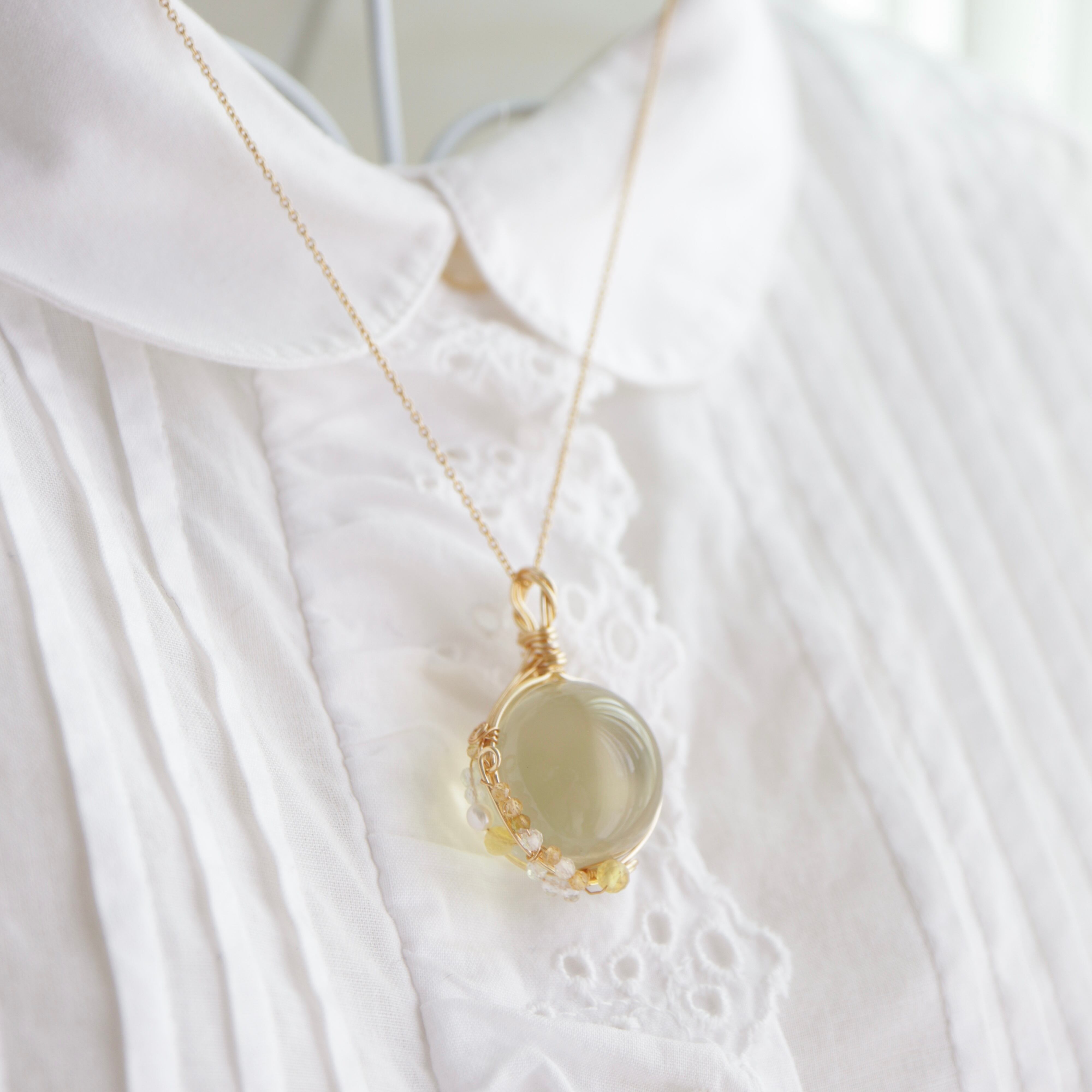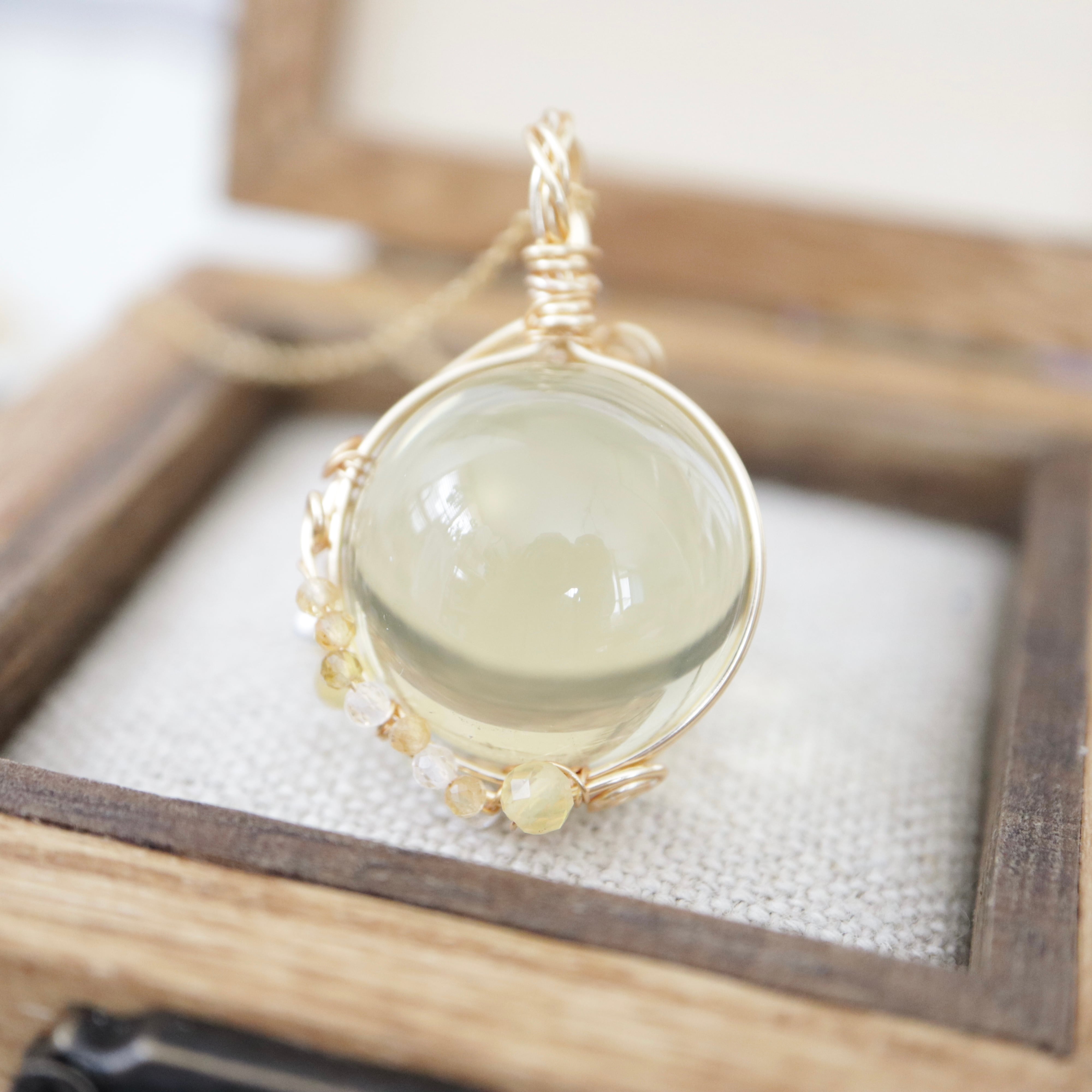 レモンクォーツ スフィア 大きめ ペンダントトップ ワイヤーラッピング