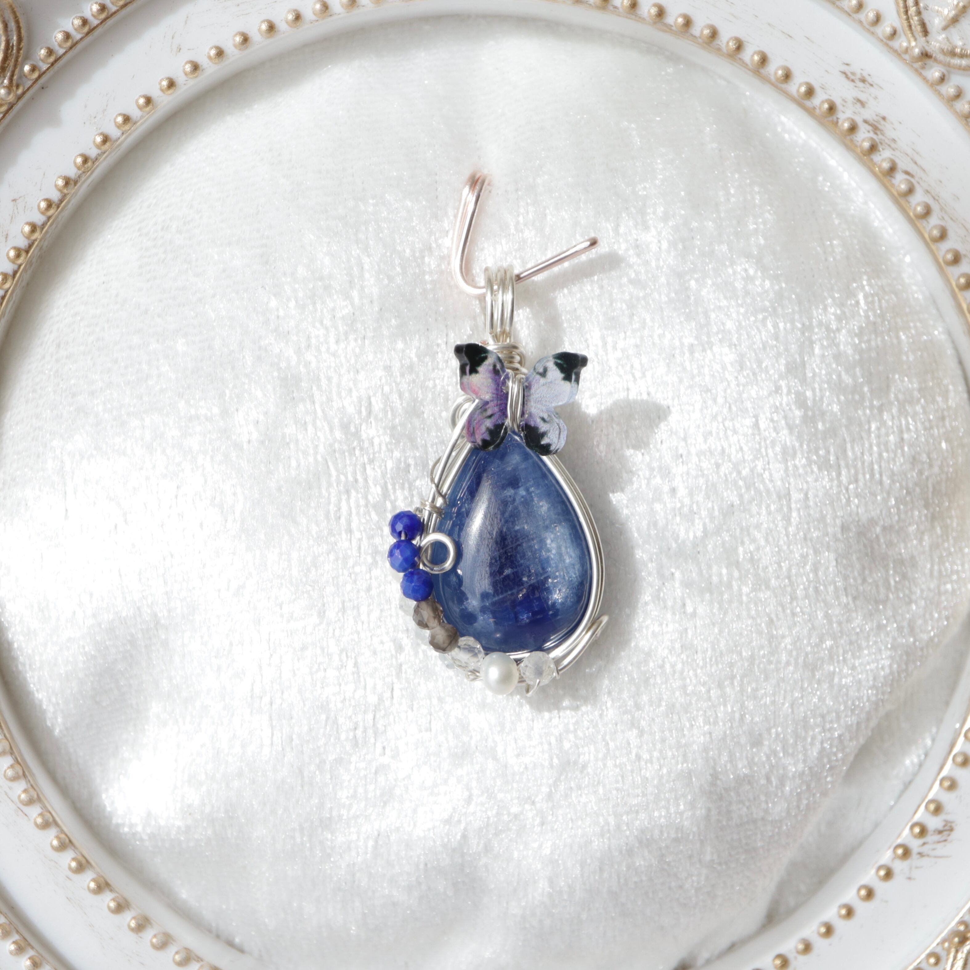 カイヤナイトの天然石ペンダントトップ《風色の石に舞いおりた蝶》|意思を整える青の守護石