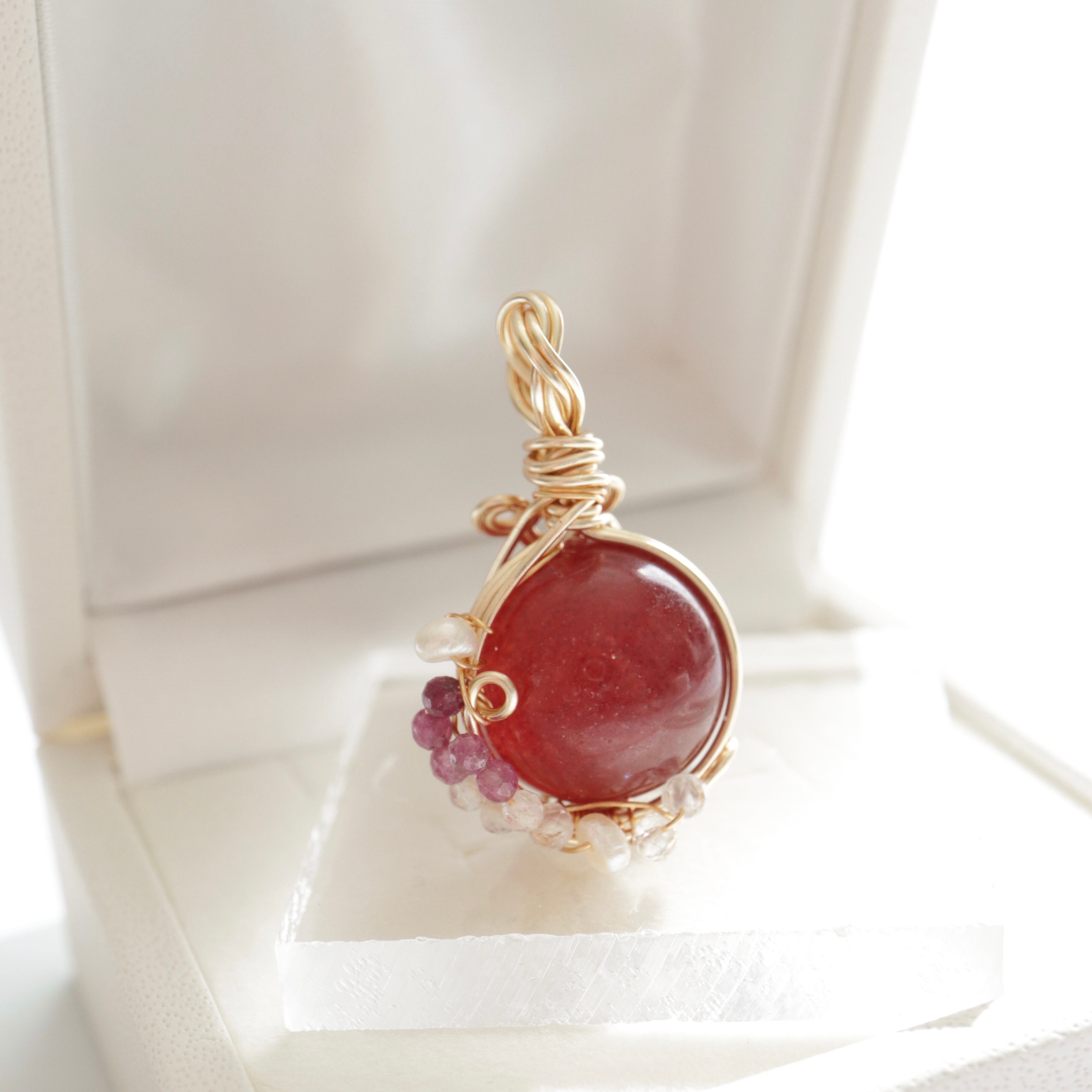 1点もの ストロベリークォーツ スフィア ワイヤーラッピング